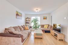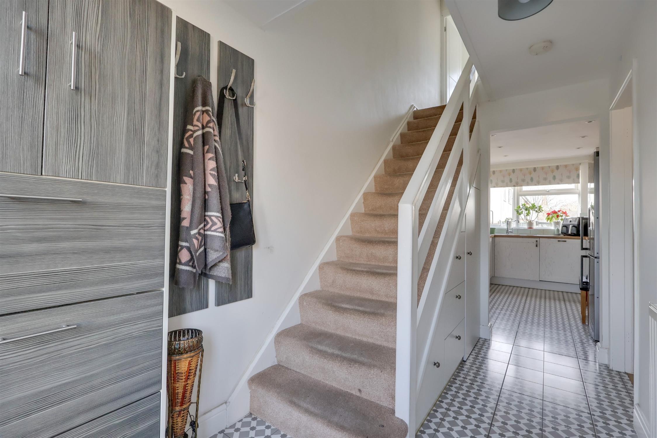 Smooth finish to ceiling, double glazed door and window to front elevation, built-in understairs storage, radiator, stairs leading to first floor, door too.