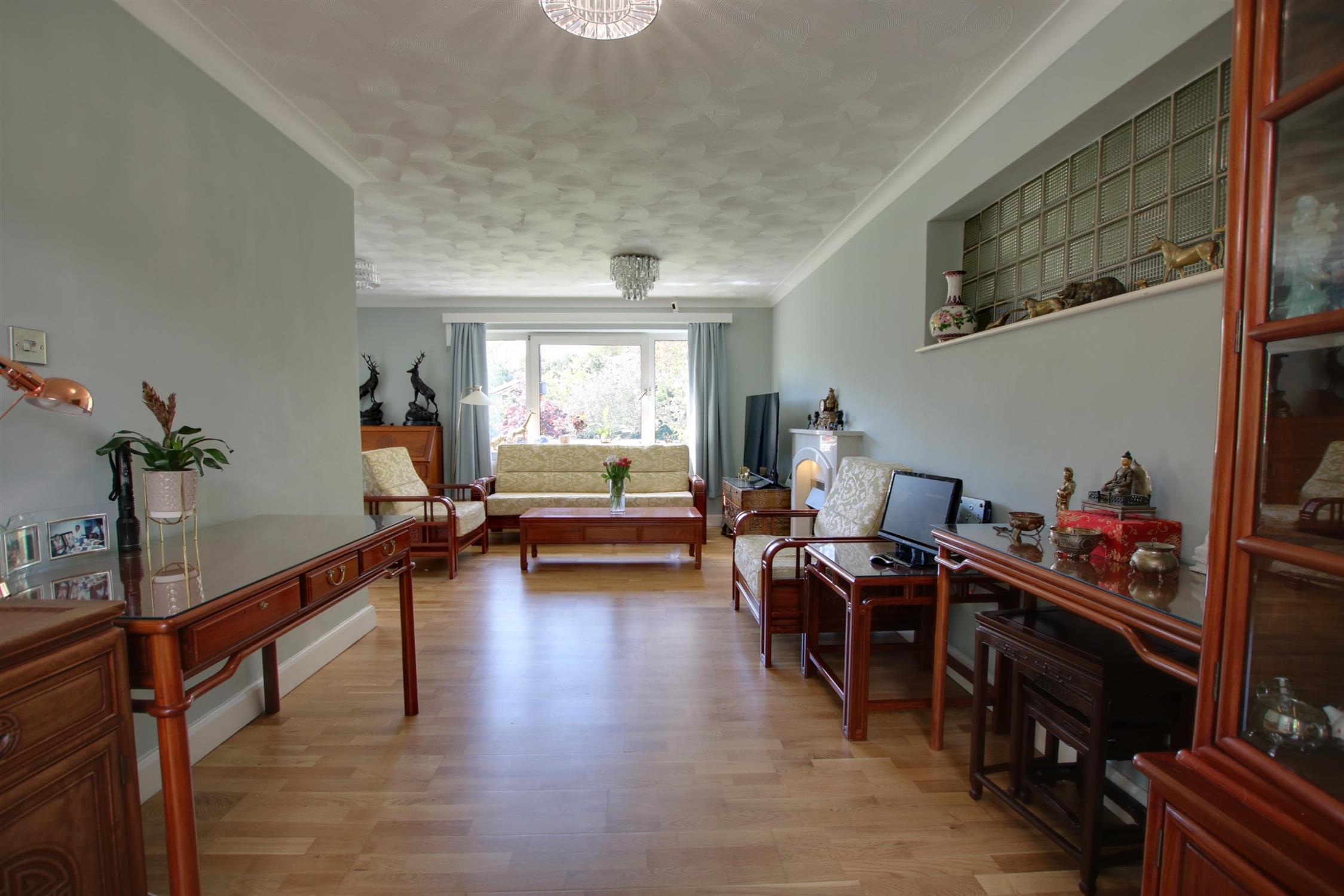 L-shaped in design with double glazed window to front elevation. Wall mounted electric radiator. Fireplace with electric fire. Textured and coved ceiling. Wood flooring.