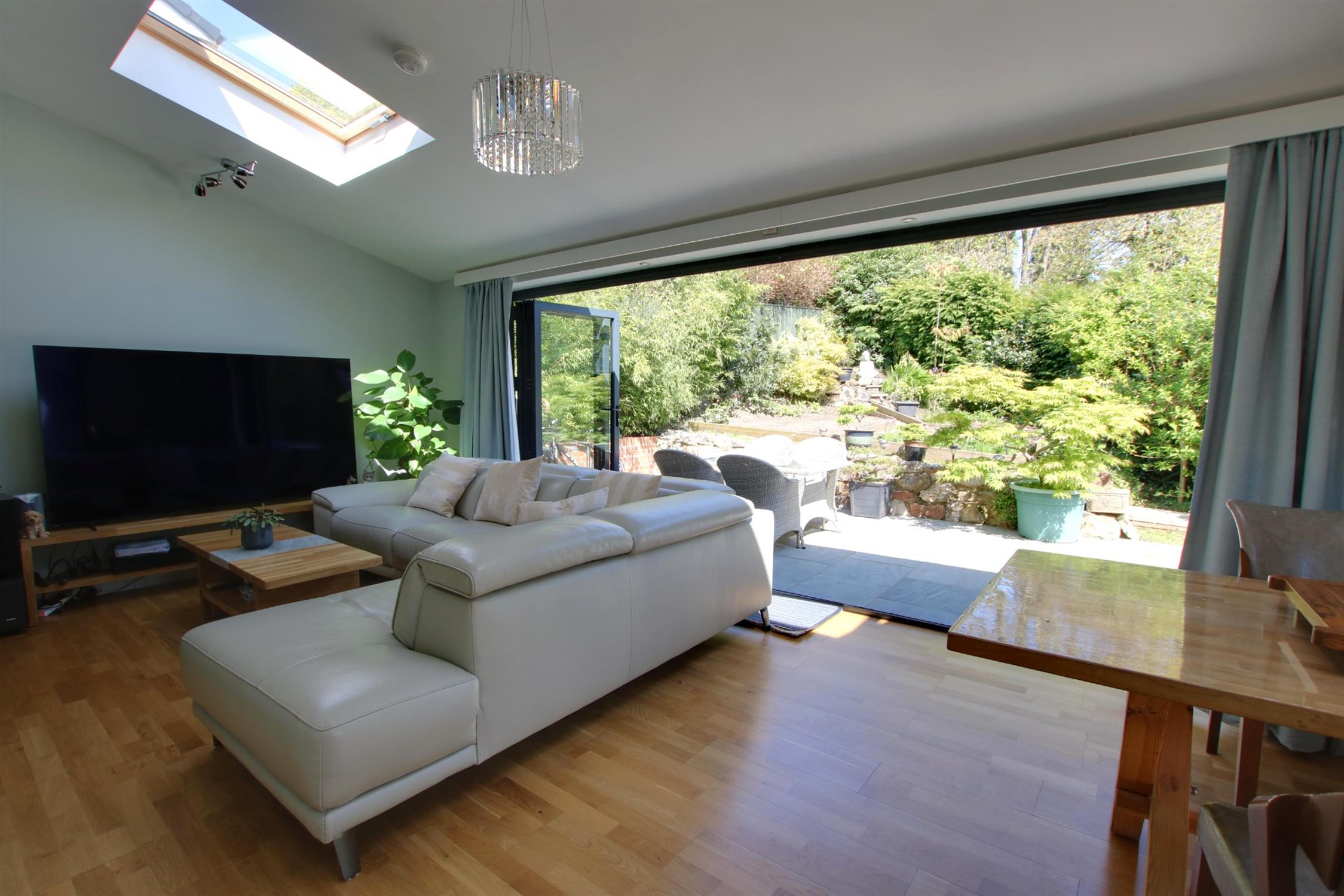 Carefully appointed addition to the property with three retracting bi-fold doors to the rear garden. Wood flooring. Two velux style windows providing addition natural light. Patio doors to side elevation. Further double glazed bi fold doors onto rear garden.