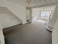 Two radiators, tiled fireplace, picture rail, textured ceiling, double glazed bay window to front elevation, French doors to utility.