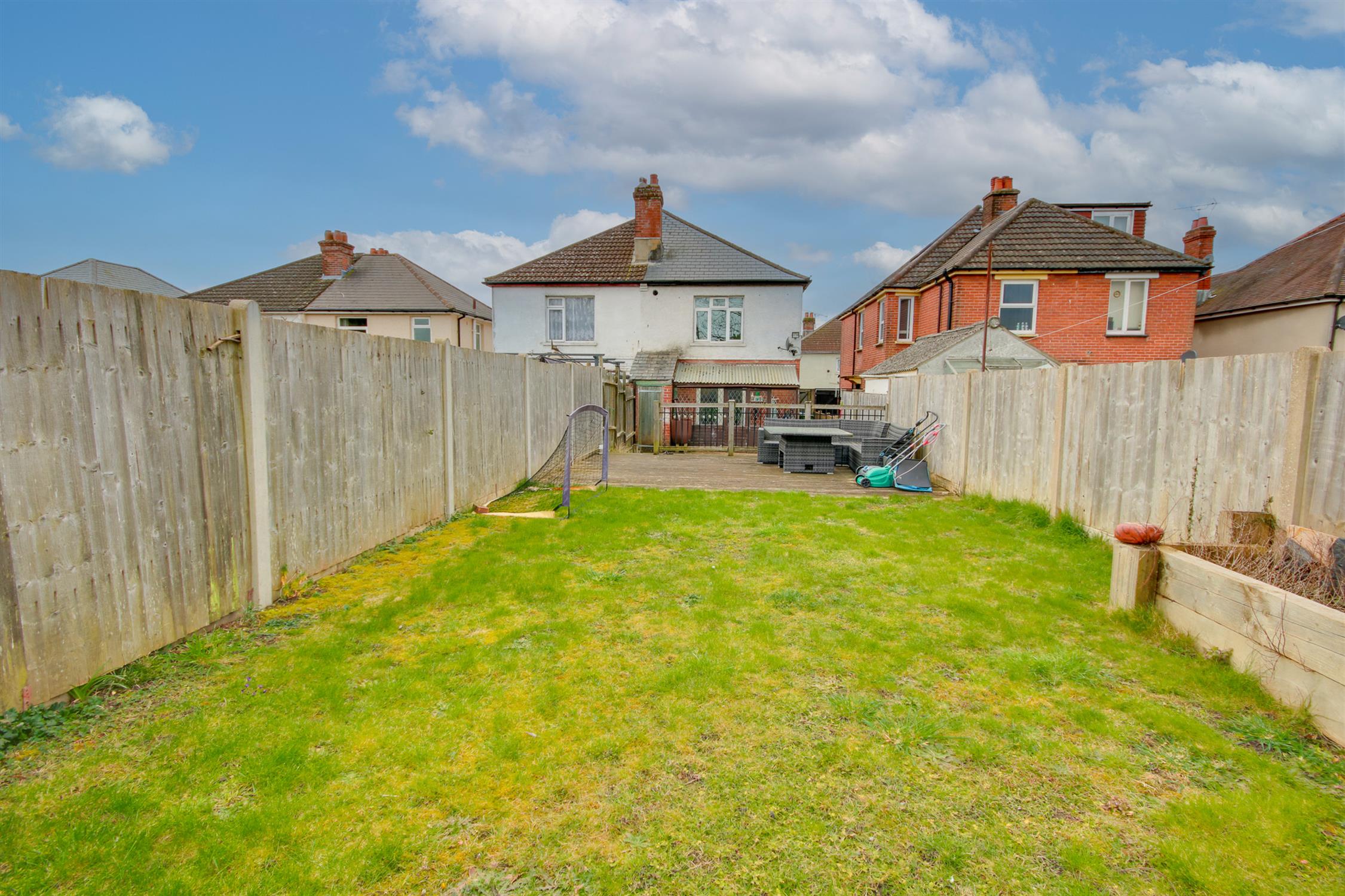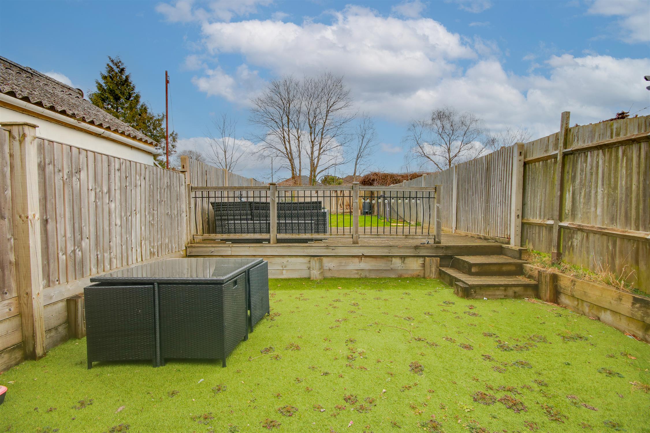 Fence enclosed rear garden offering good degree of privacy. Artificial lawn with steps to decked seating area. Lawned space to rear. Gated side access.