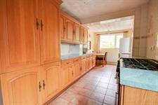 Textured ceiling, UPVC double glazed window to rear, UPVC double glazed window to side, a range of wall, base and drawer units with work surface over, bowl and a half sink with drainer inset, space for Range style cooker, washing machine, dishwasher and fridge/freezer, serving hatch, tiled splashbacks and floor, radiator.