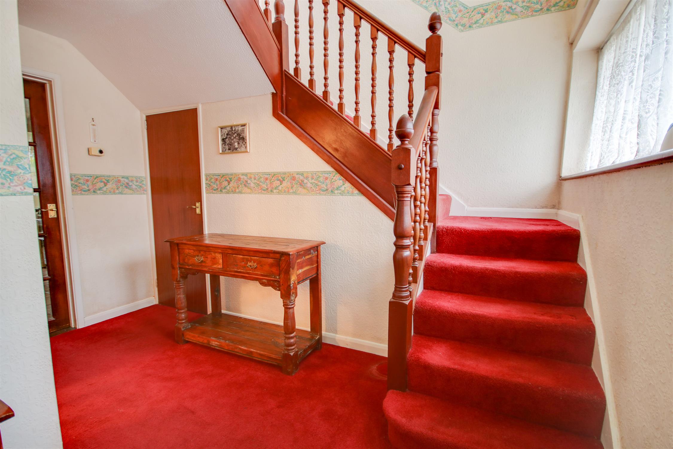 Textured ceiling, hatch providing access to loft space, UPVC double glazed pbscured window to front, airing cupboard, doors to: