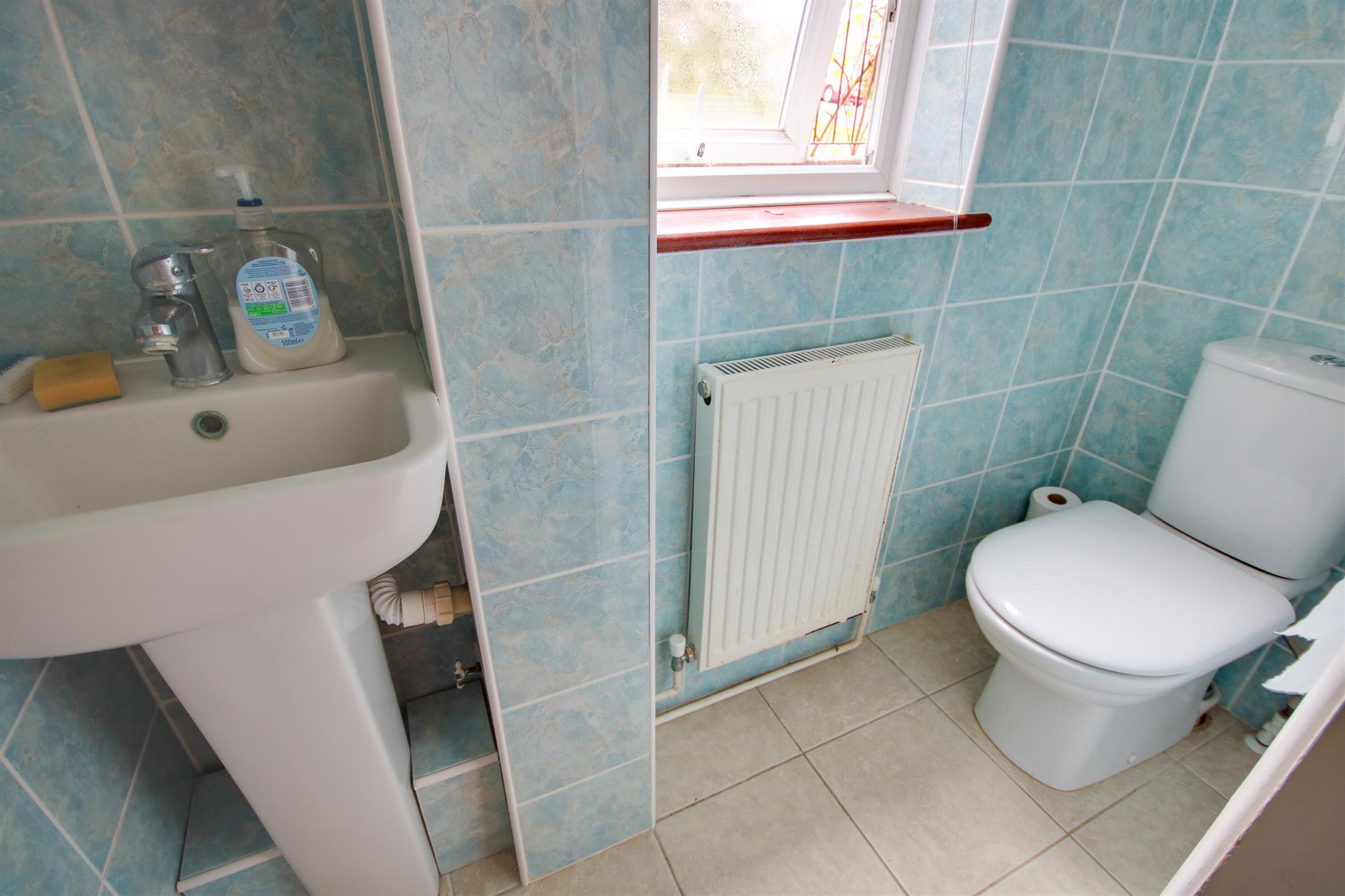 Textured ceiling, UPVC double glazed obscured window to side, WC, wash hand basin, radiator, fully tiled walls and floor.