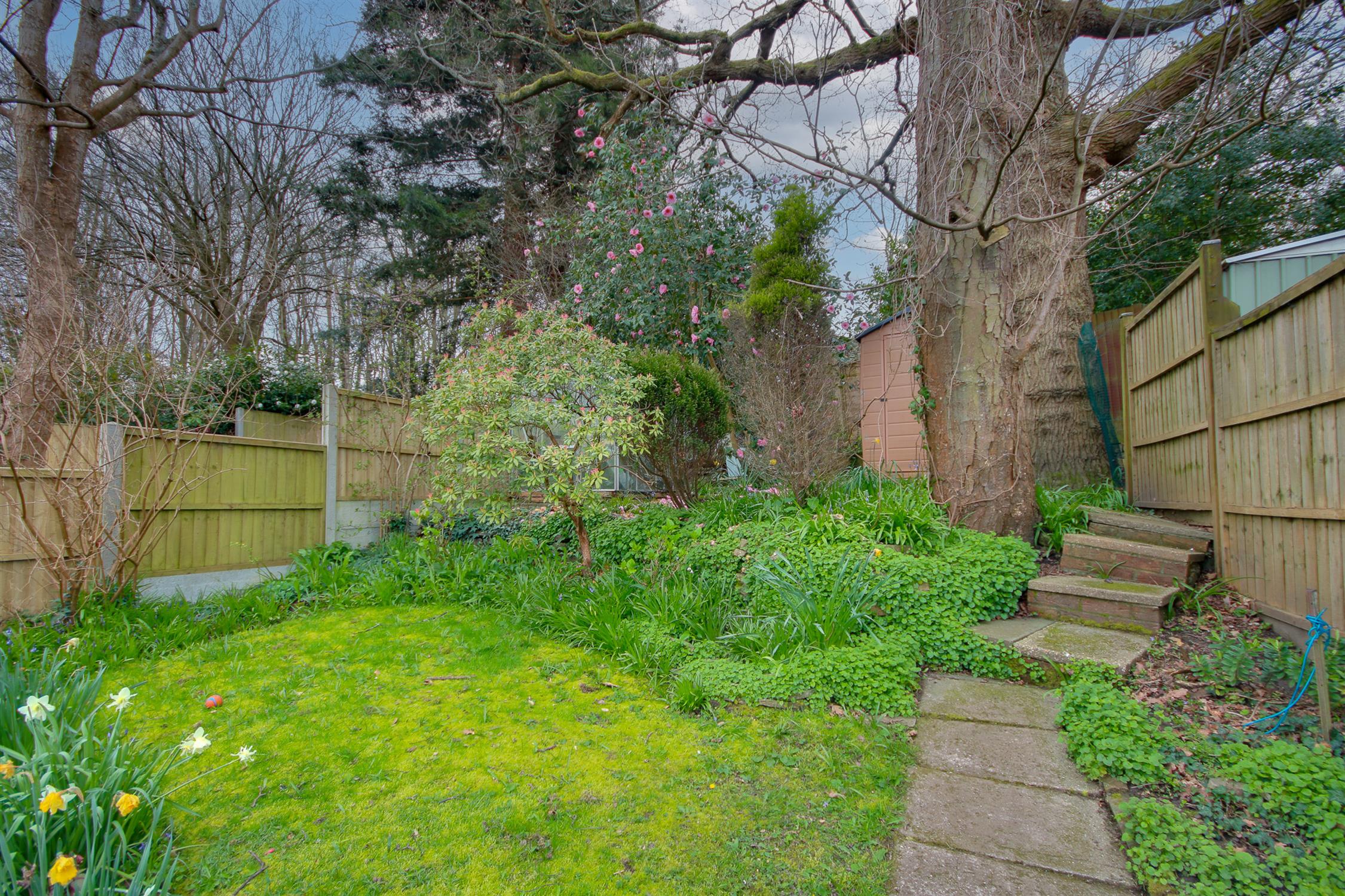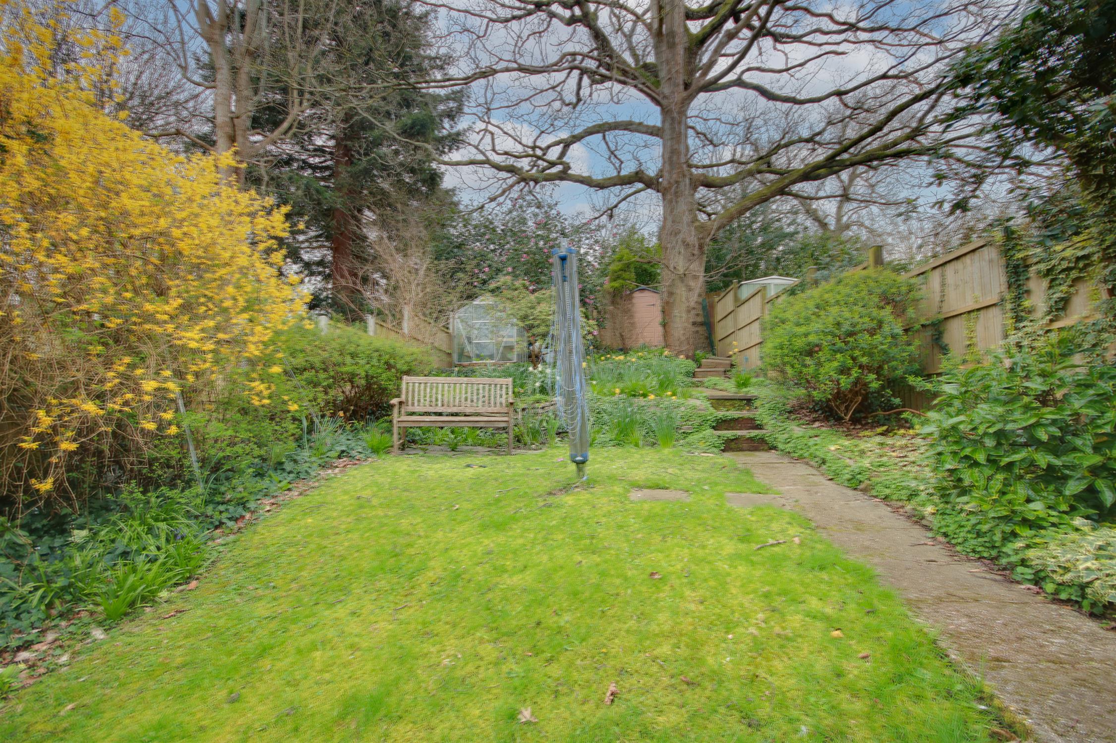 Beautiful southerly aspect, fence enclosed rear garden arranged over usable tiers, lawned, mature flower and shrub borders, greenhouse, shed, outside tap, gated pedestrian side access.