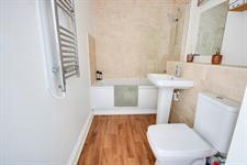 Smooth ceiling with extractor over, cupboard housing water tank, three-piece suite comprising: panel enclosed bath with mains fed shower over, wash hand basin and WC, tiling to principal areas.