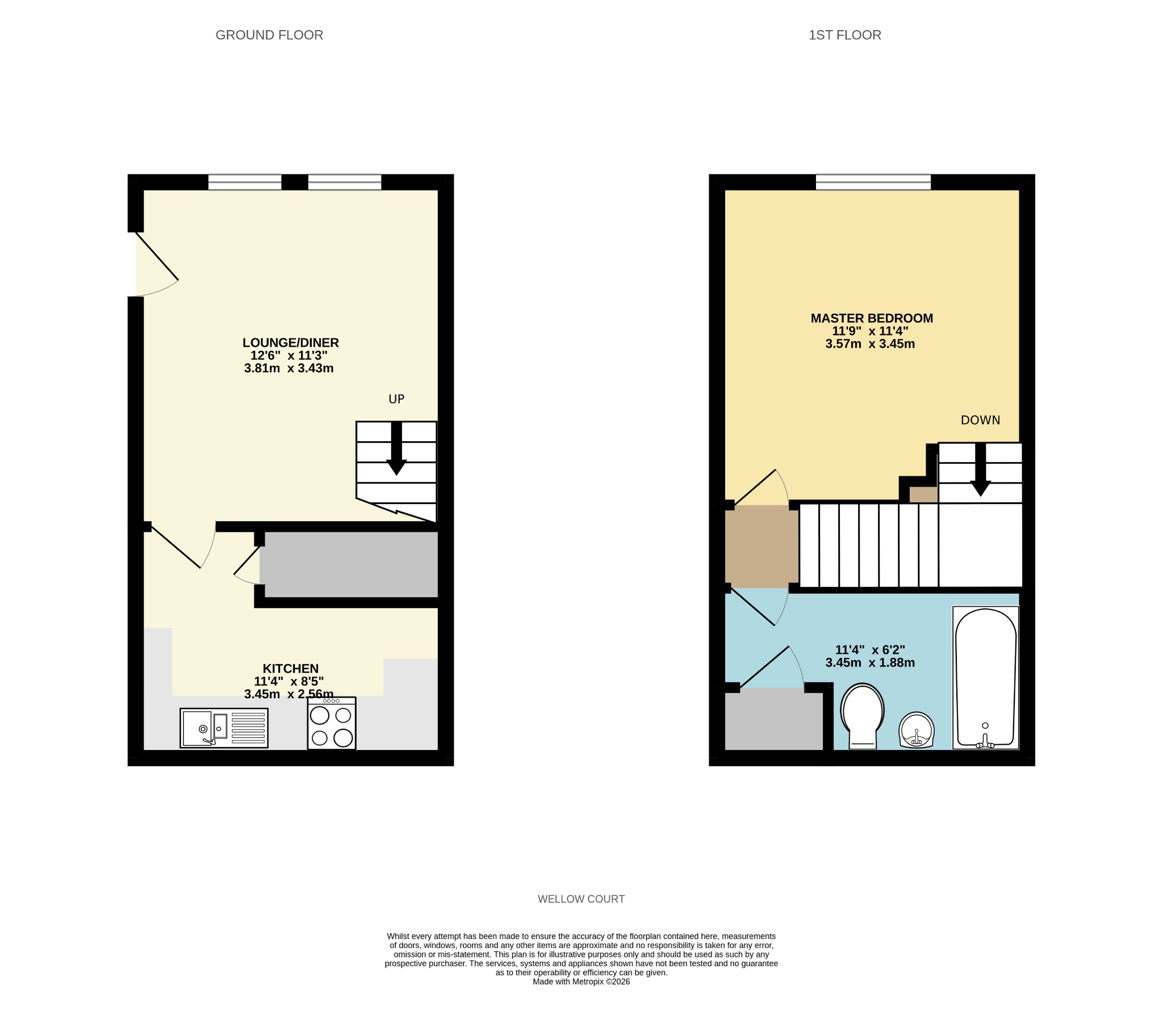 11' 4" (3.45m) x 11' 9" (3.58m)::