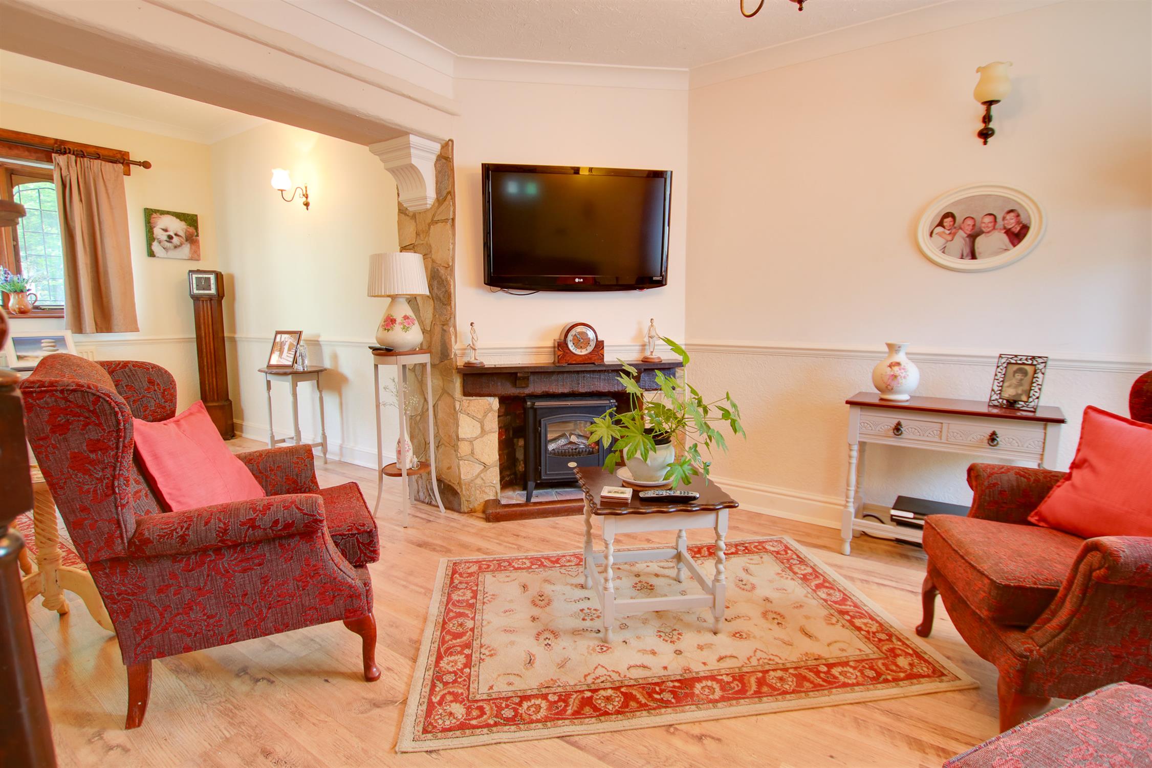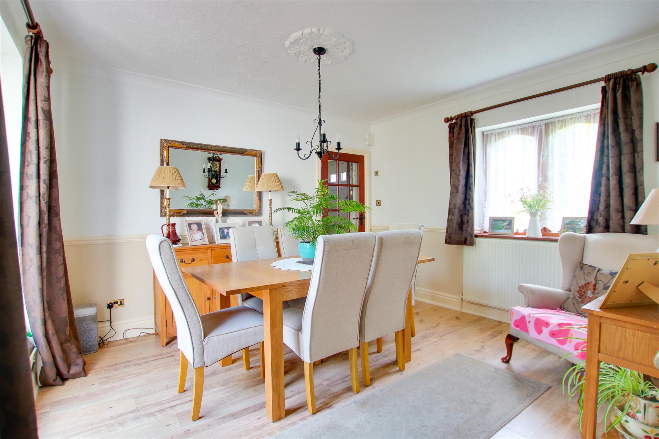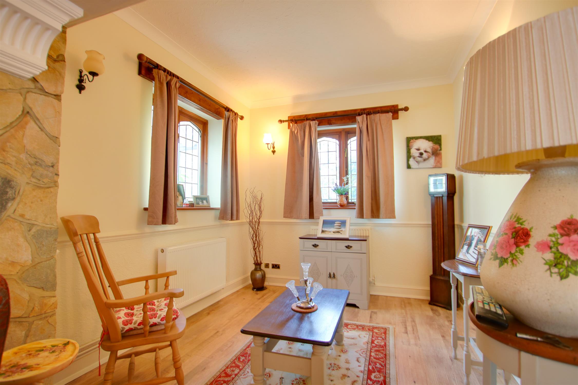 One radiator, wood laminate floor, wood double glazed unit to front, sliding door to sun room.