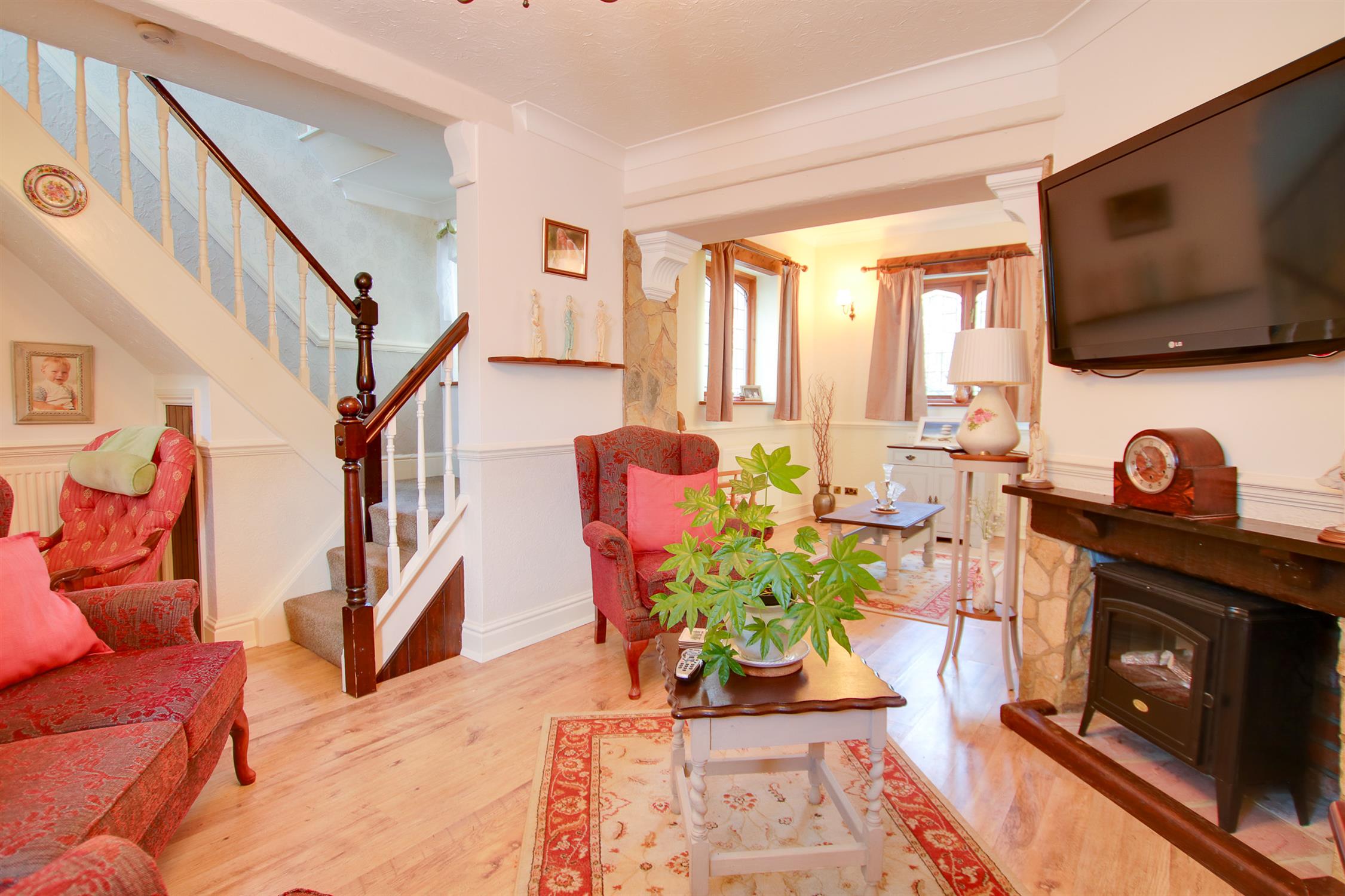 Bay window to front, four radiators, wood frame wood windows to rear, UPVC front door.
