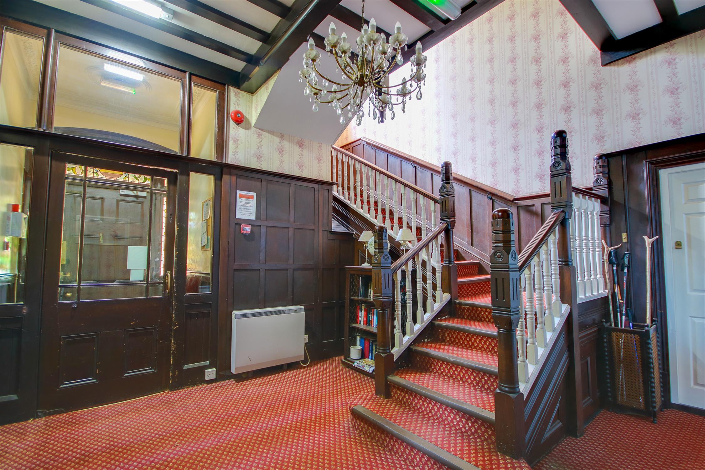 Feature panelled walls, original style rossini patterned carpets, feature staircase with carved bannisters leading to all floors.