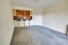 Smooth and coved ceiling, UPVC double glazed french doors providing access onto communal patio and gardens, storage heater.