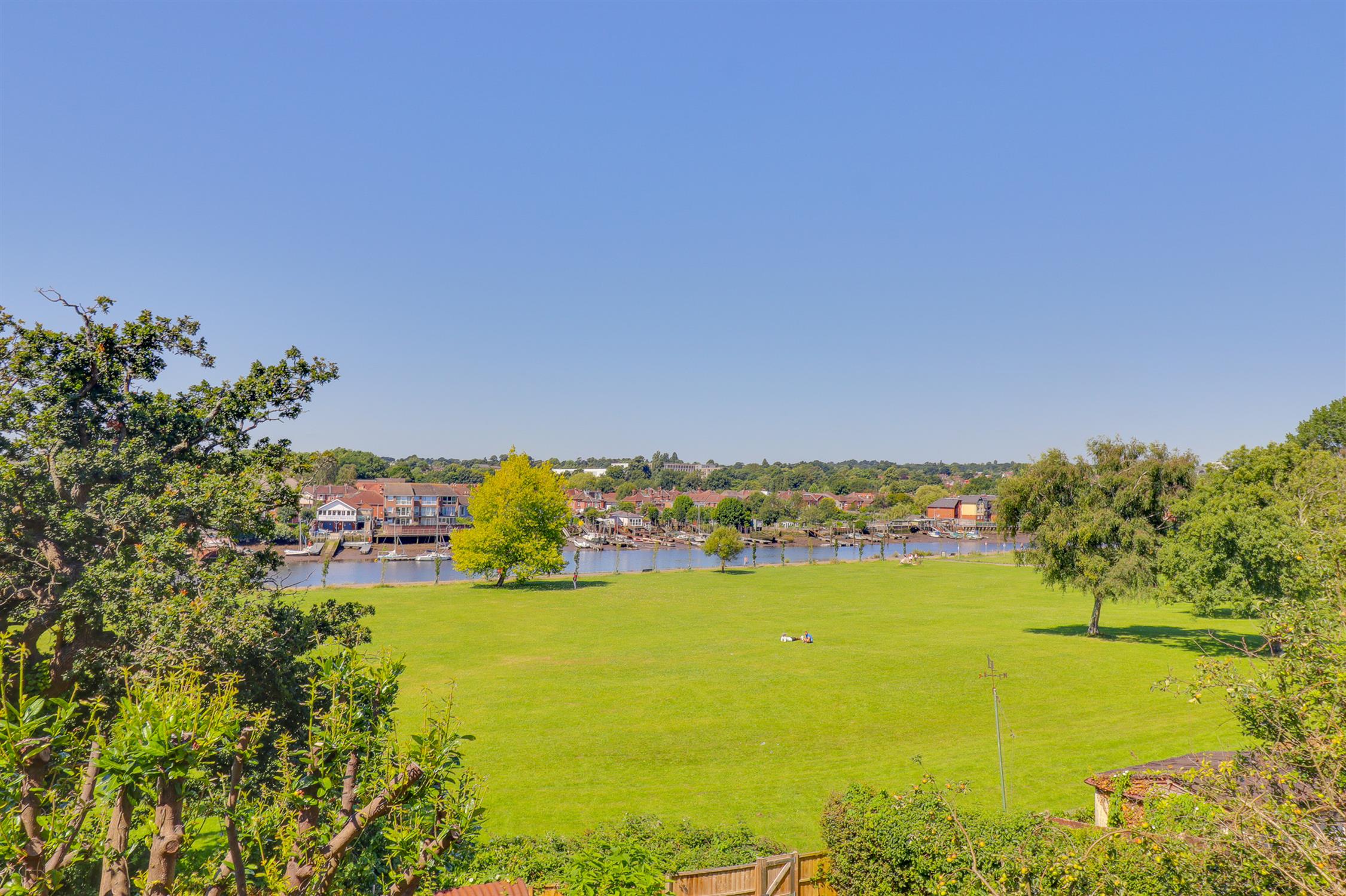 Smooth ceiling with feature beams, windows to front, side and rear, views over the river Itchen and Riverside Park, double doors to side leading into garden, two radiators, under stair storage.