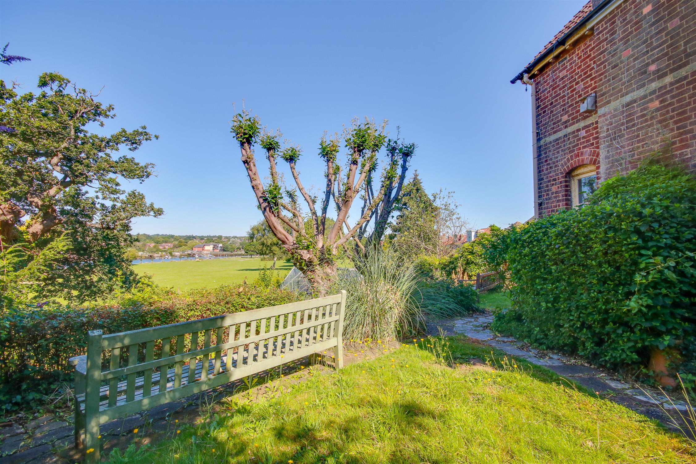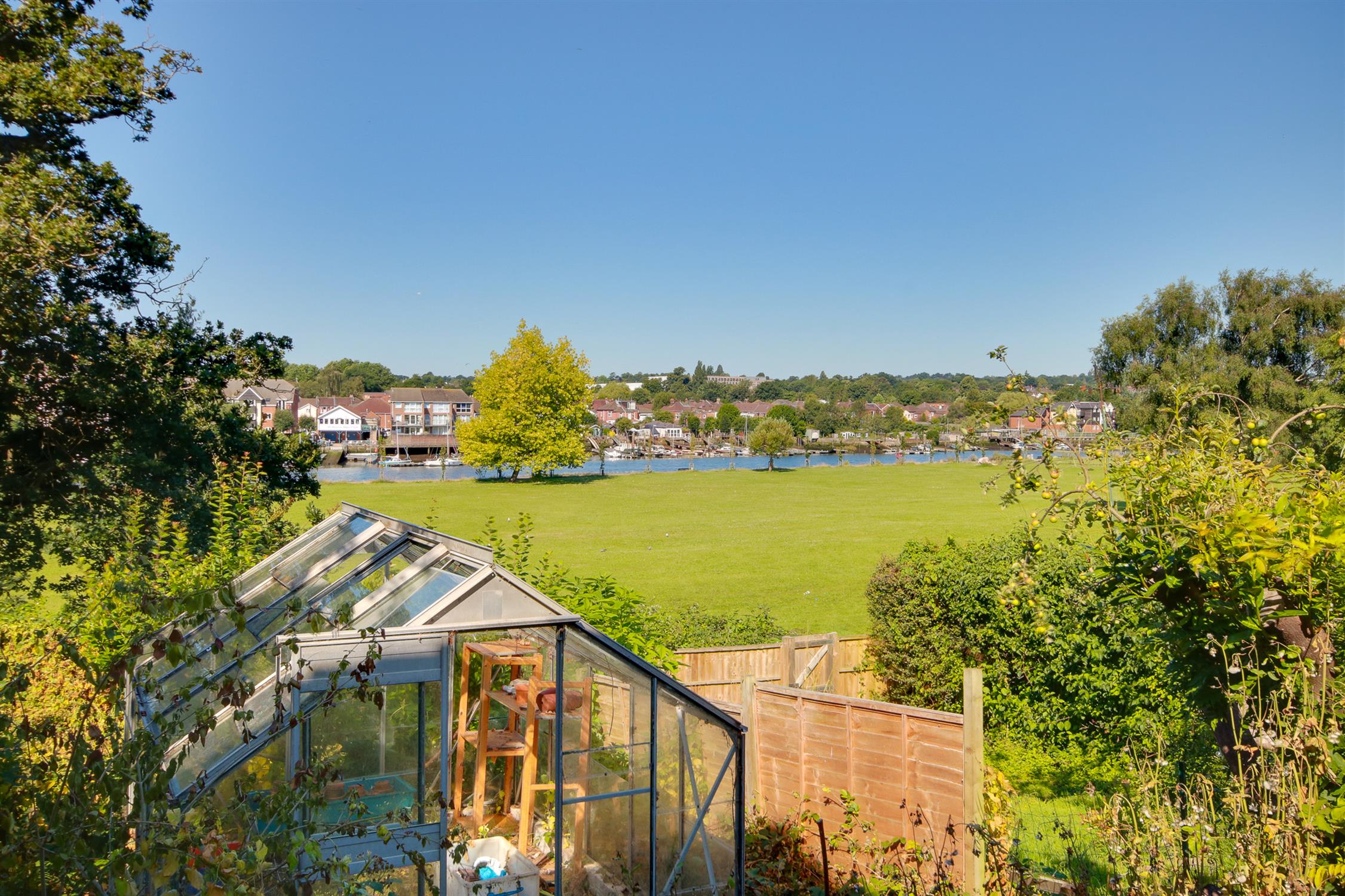 Corner plot, direct water views over Riverside Park, external WC access, metal framed greenhouse, cobble stone path to side access.