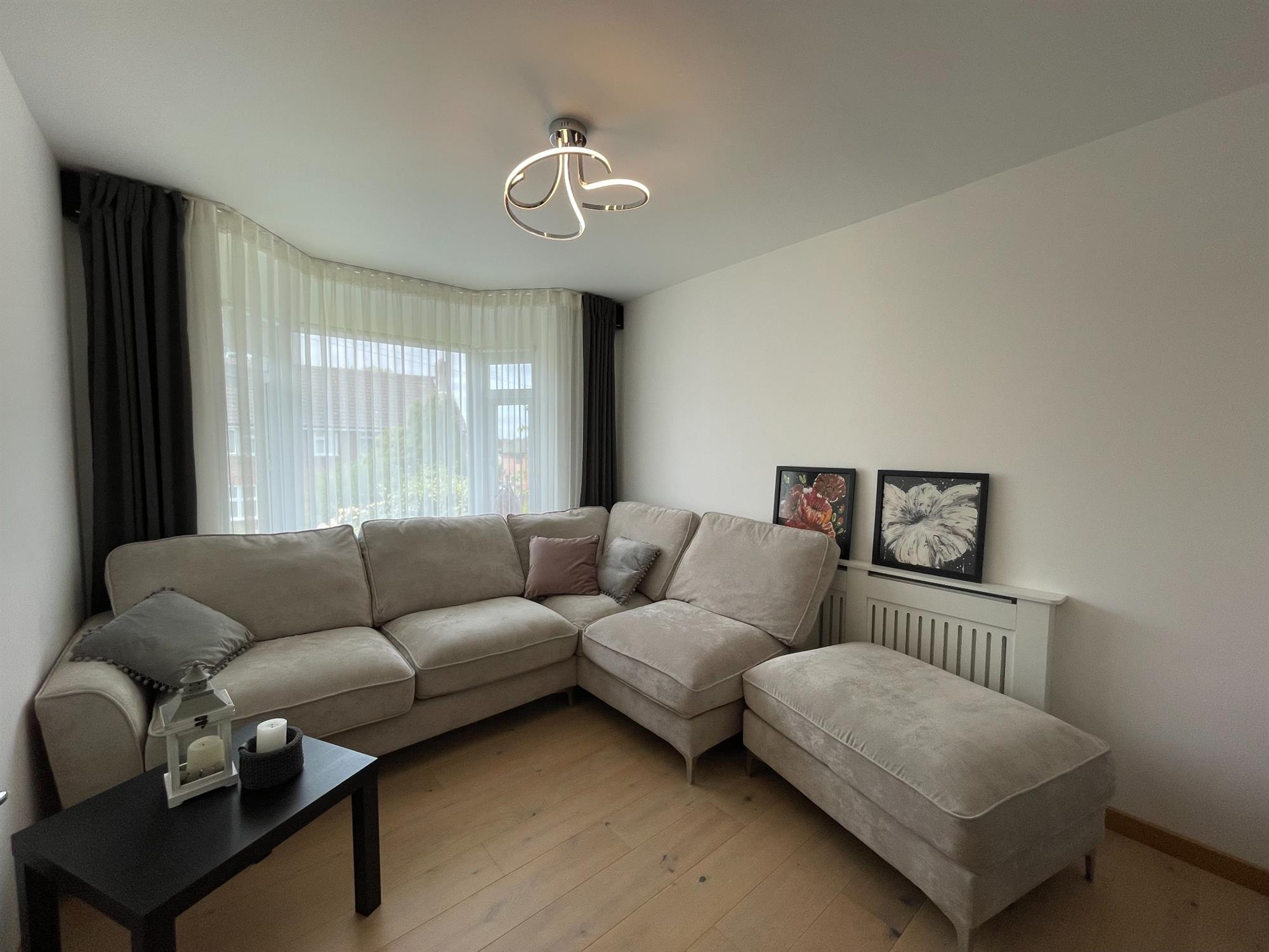 Smooth ceiling, UPVC double glazed bay window to the front elevation. Radiator. Oak flooring.