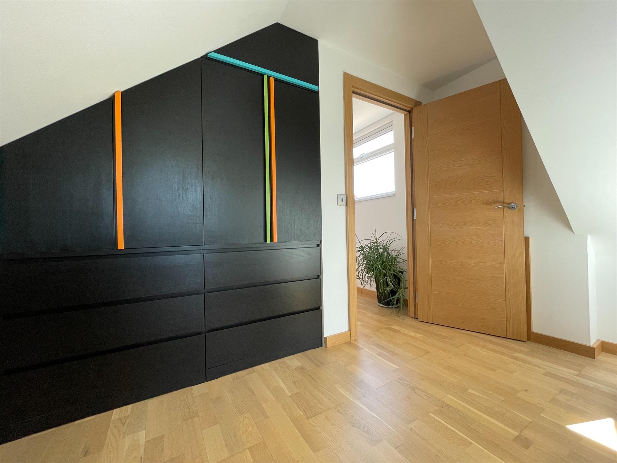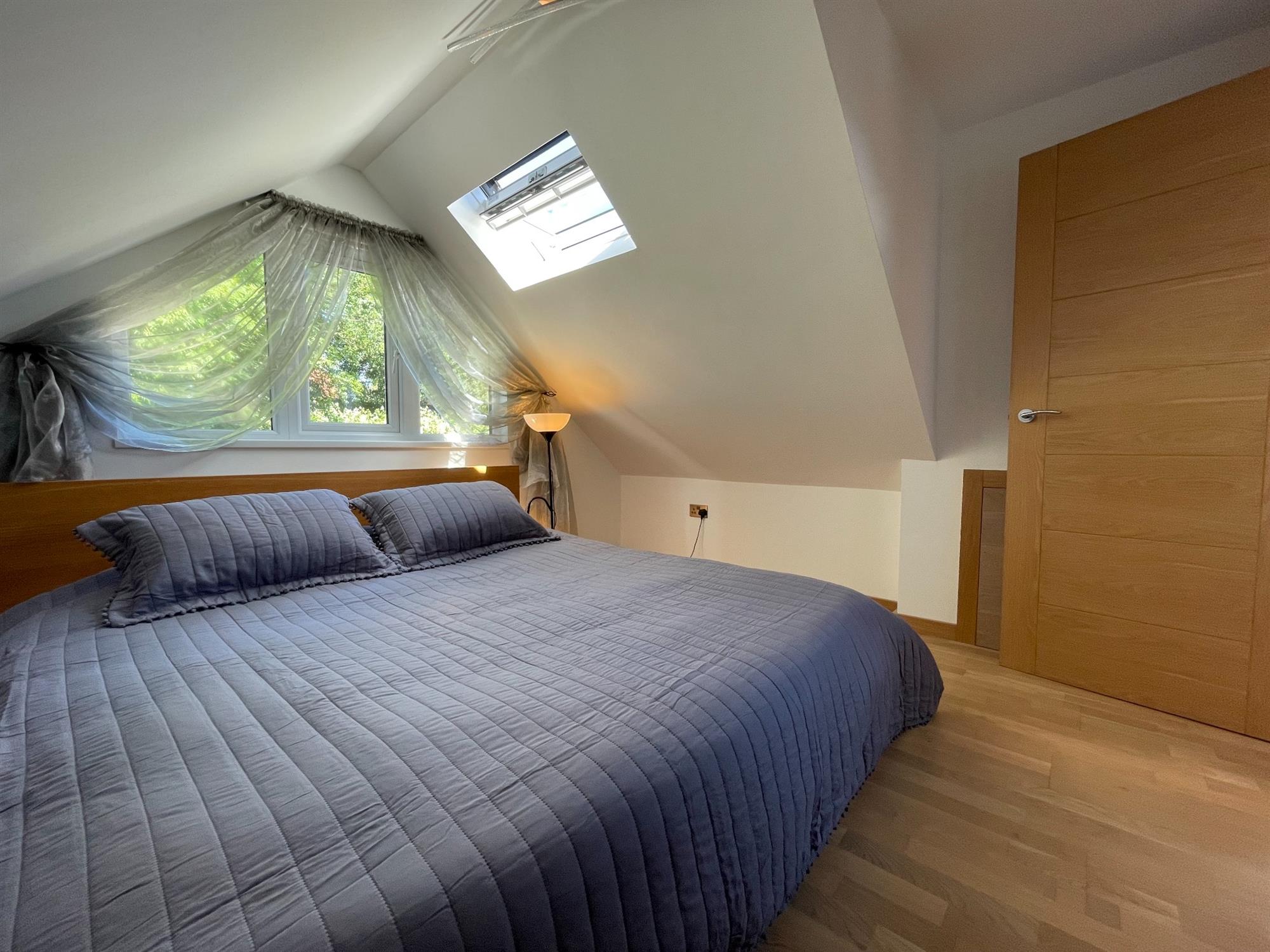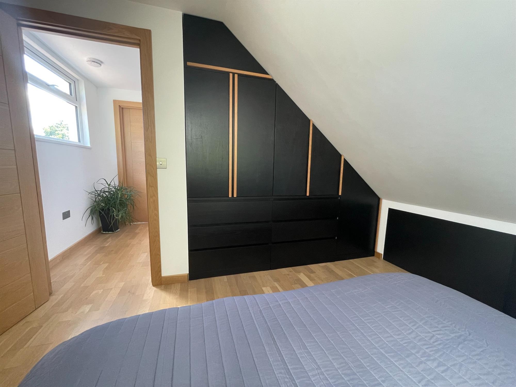 Smooth ceiling, UPVC double glazed Velux style window to side, UPVC double glazed window to the front. Fitted storage and access to eaves. Radiator.