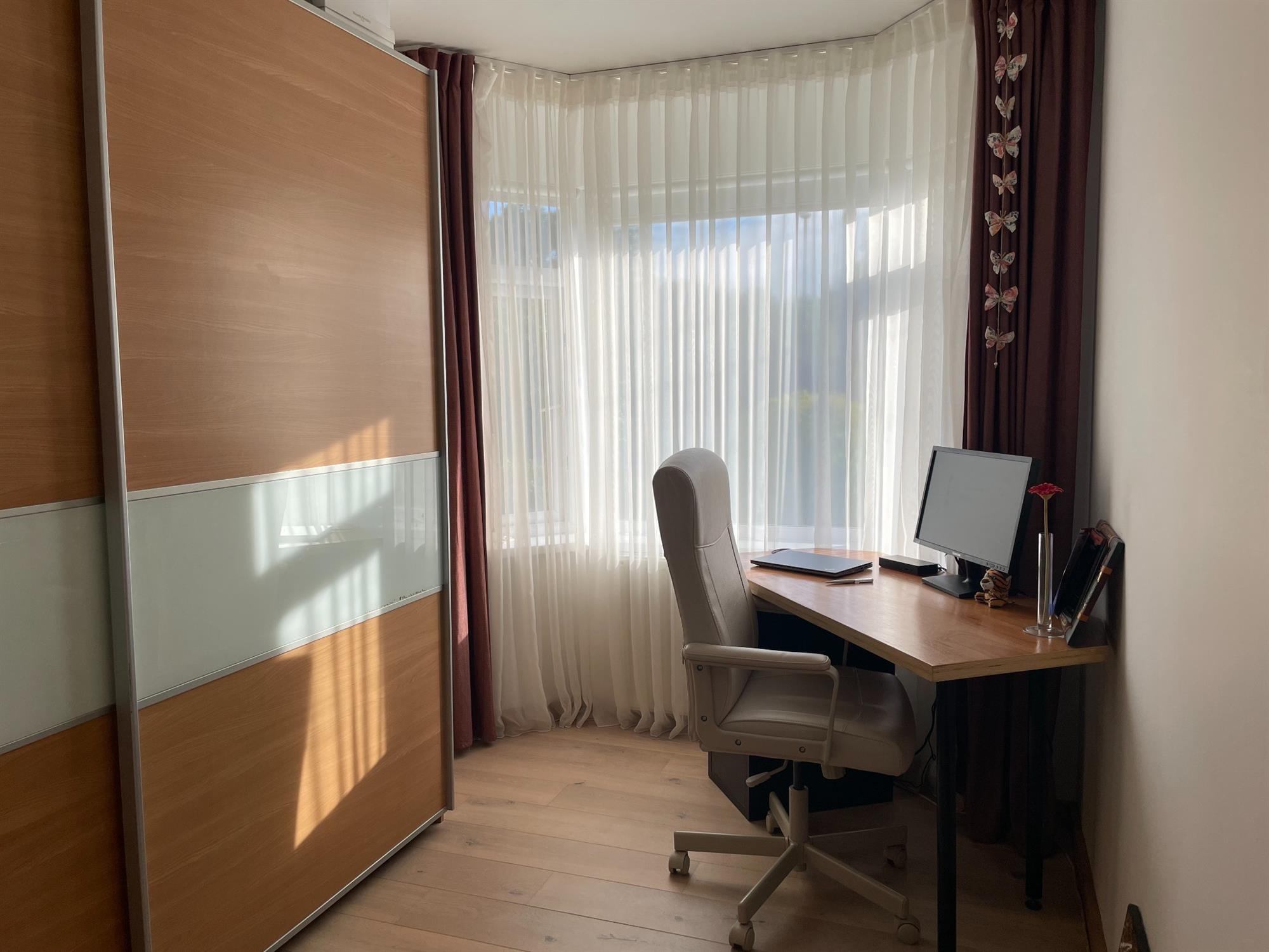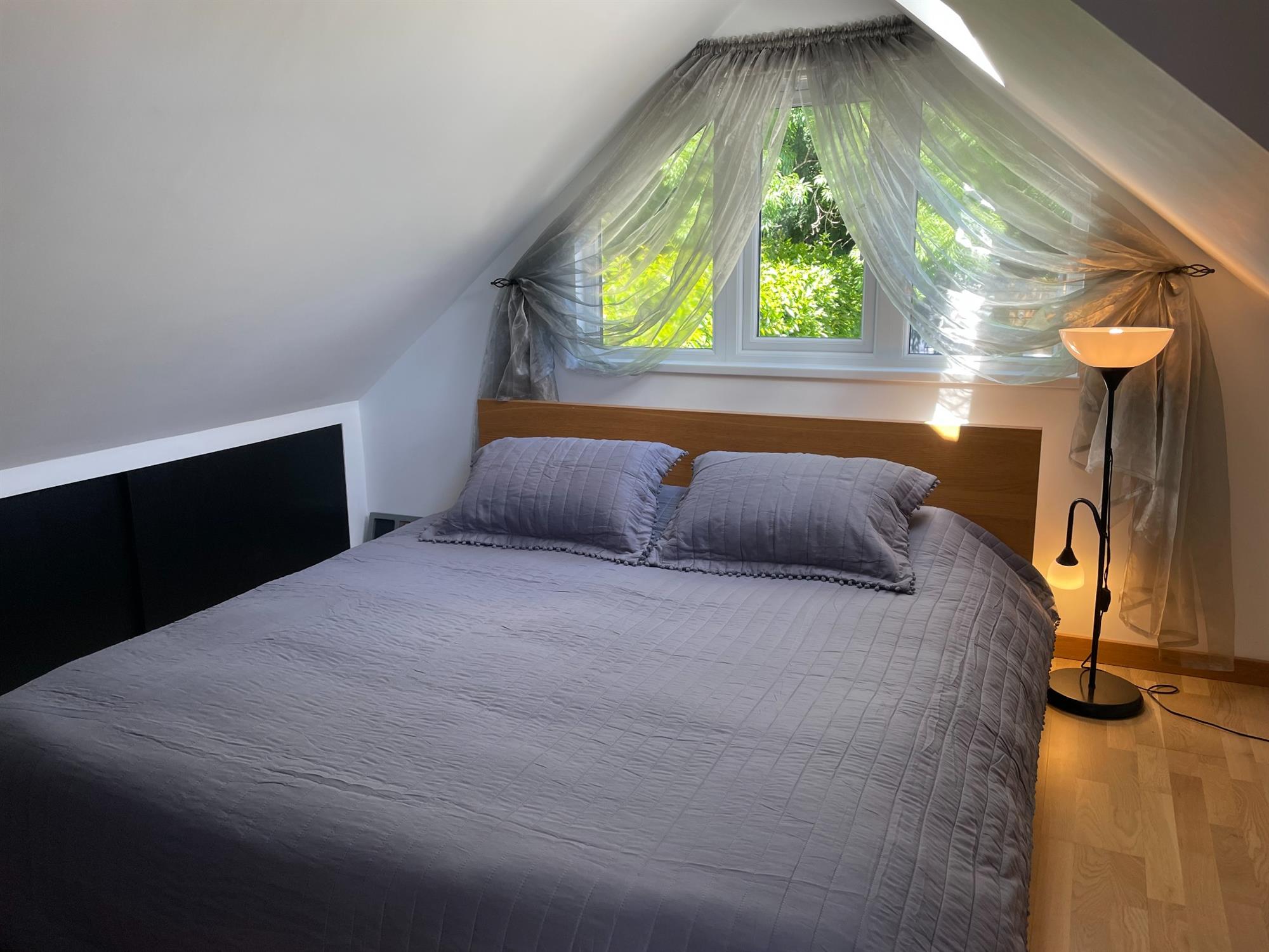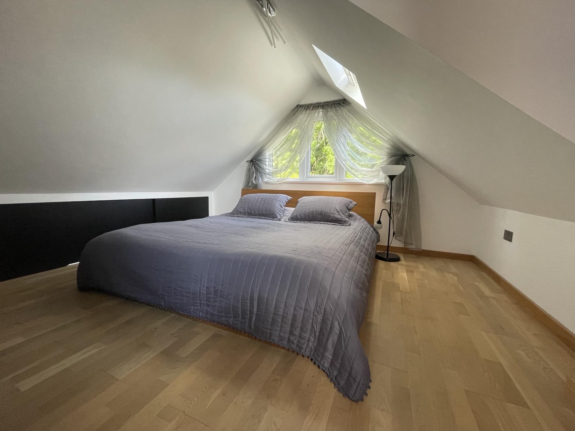 Smooth ceiling, UPVC double glazed Velux style window to side, UPVC double glazed window to the front. Fitted storage and access to eaves. Radiator.