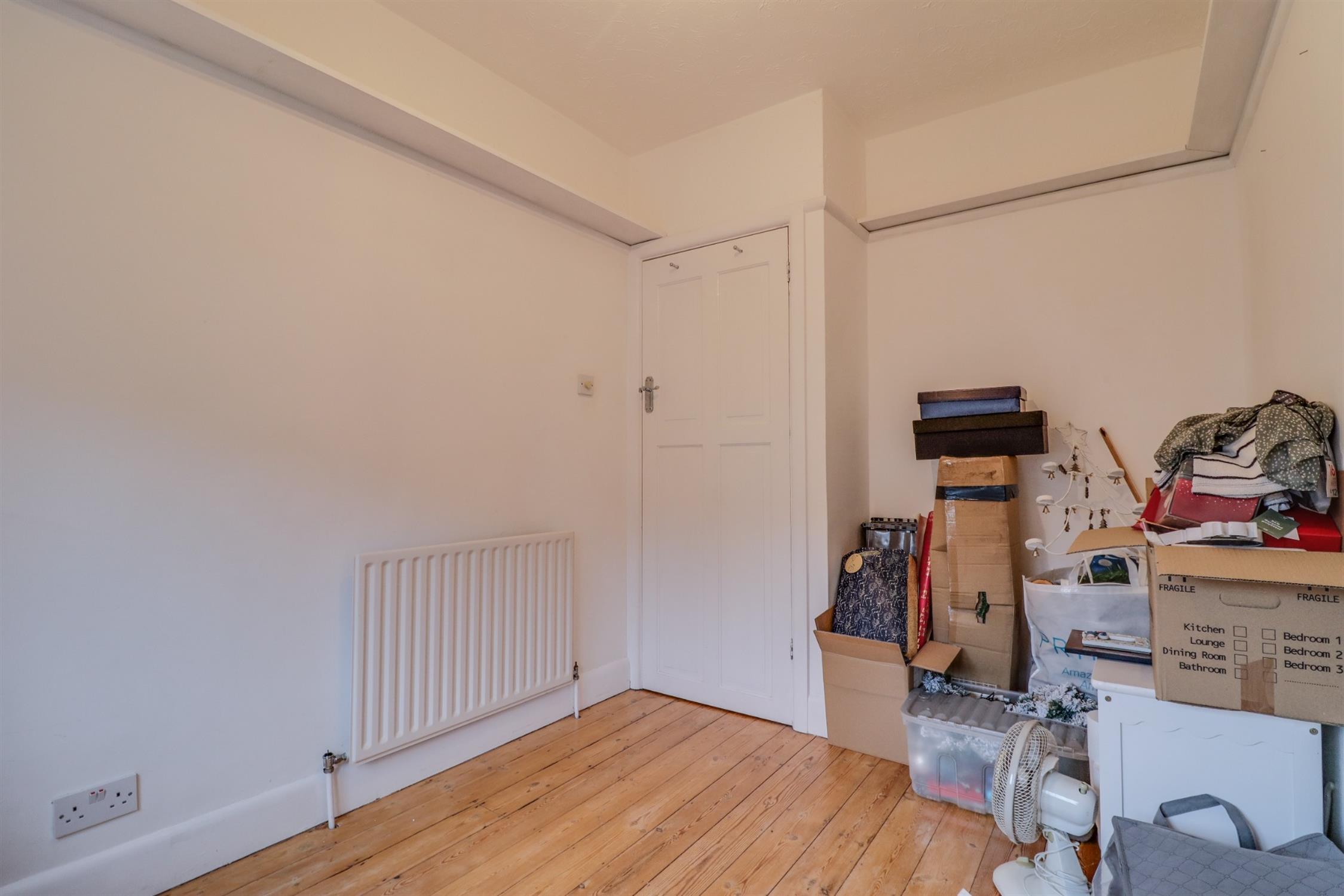 Exposed floorboards, one radiator, one UPVC double glazed window to front, picture railings, sockets.