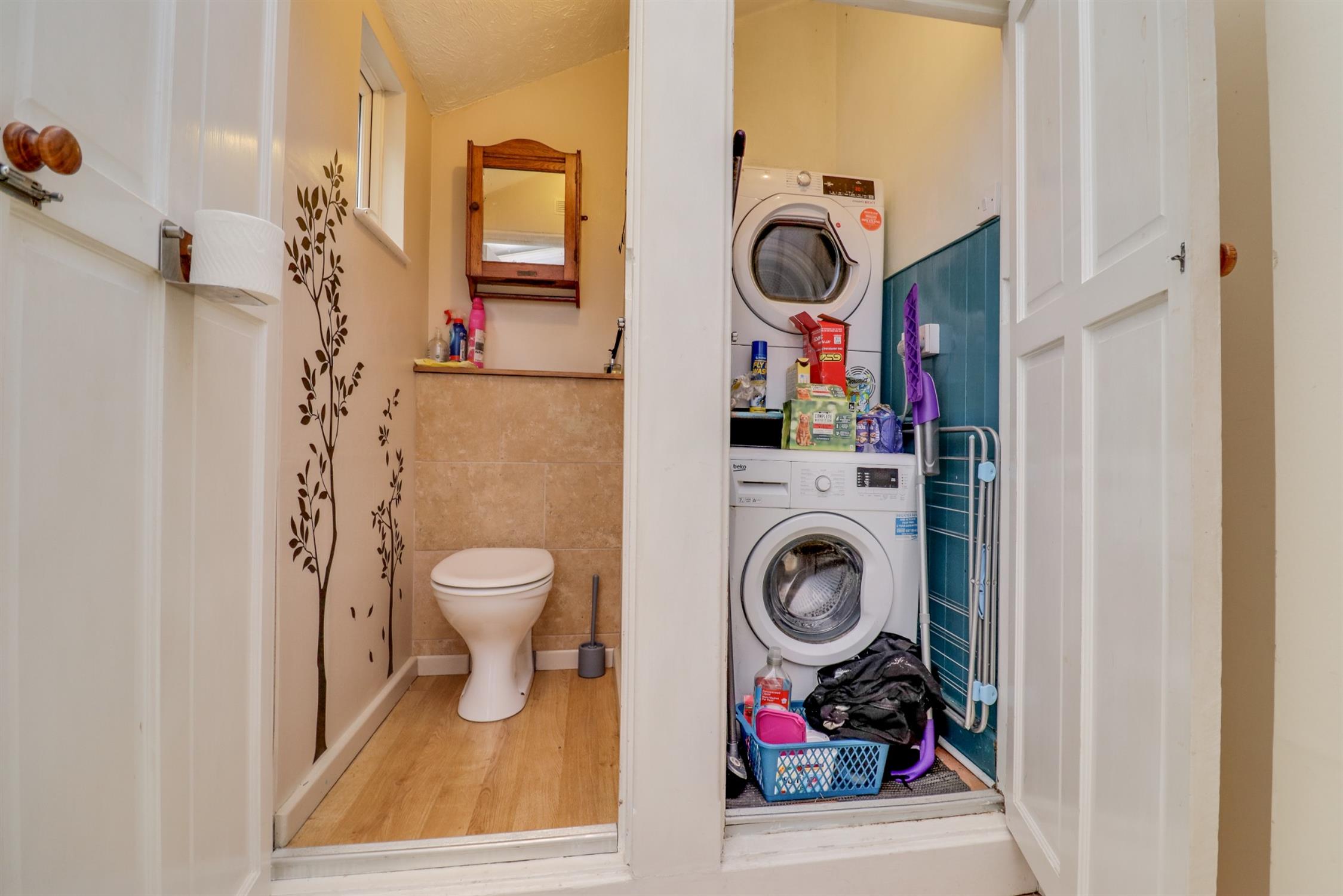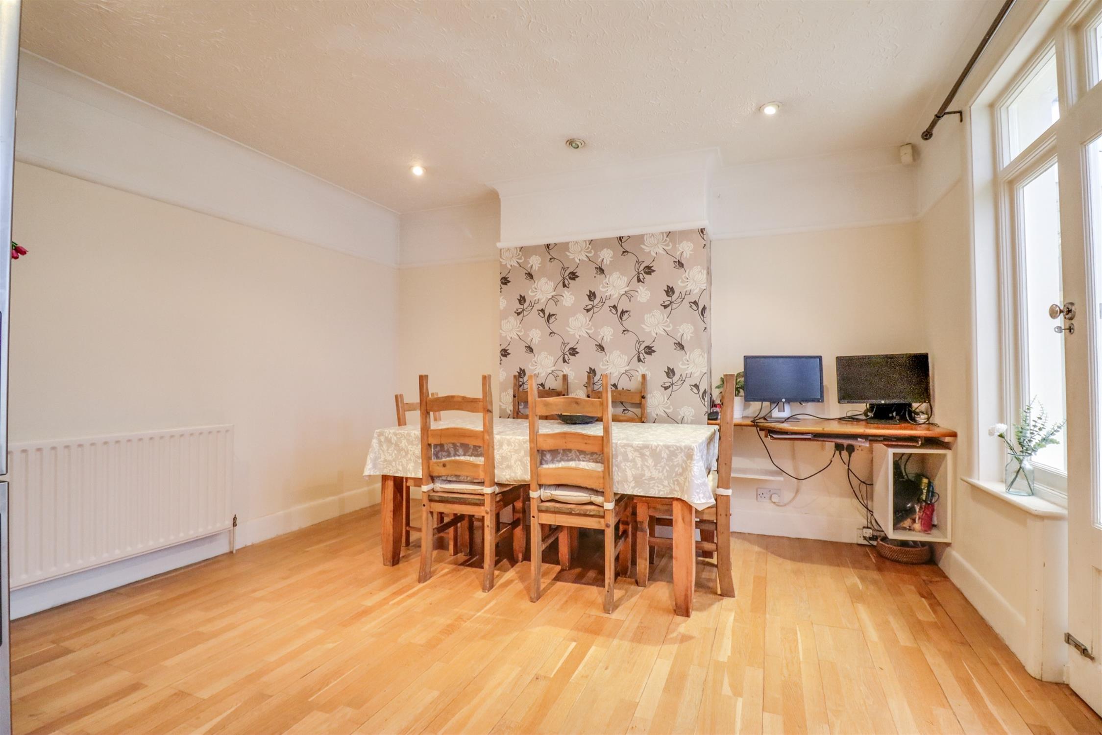 Varnished exposed floorboards, a large under stairs cupboard, UPVC double glazed window to rear elevation, sockets, picture rails, radiator.