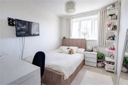 Smooth finish to ceiling, double glazed window to front elevation, built in wardrobes with mirror fronted sliding doors, storage cupboard, radiator.