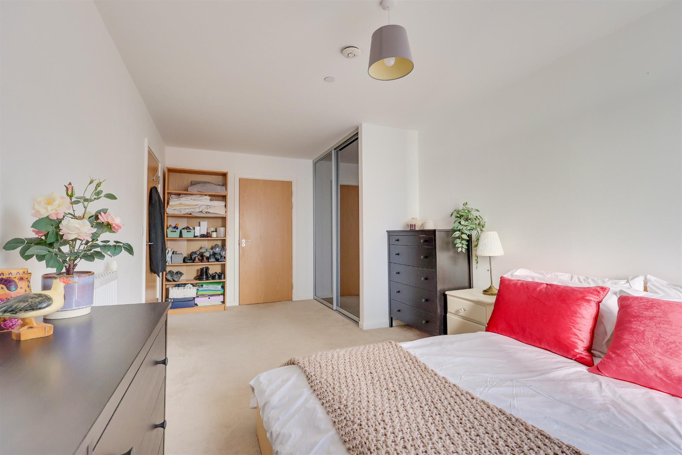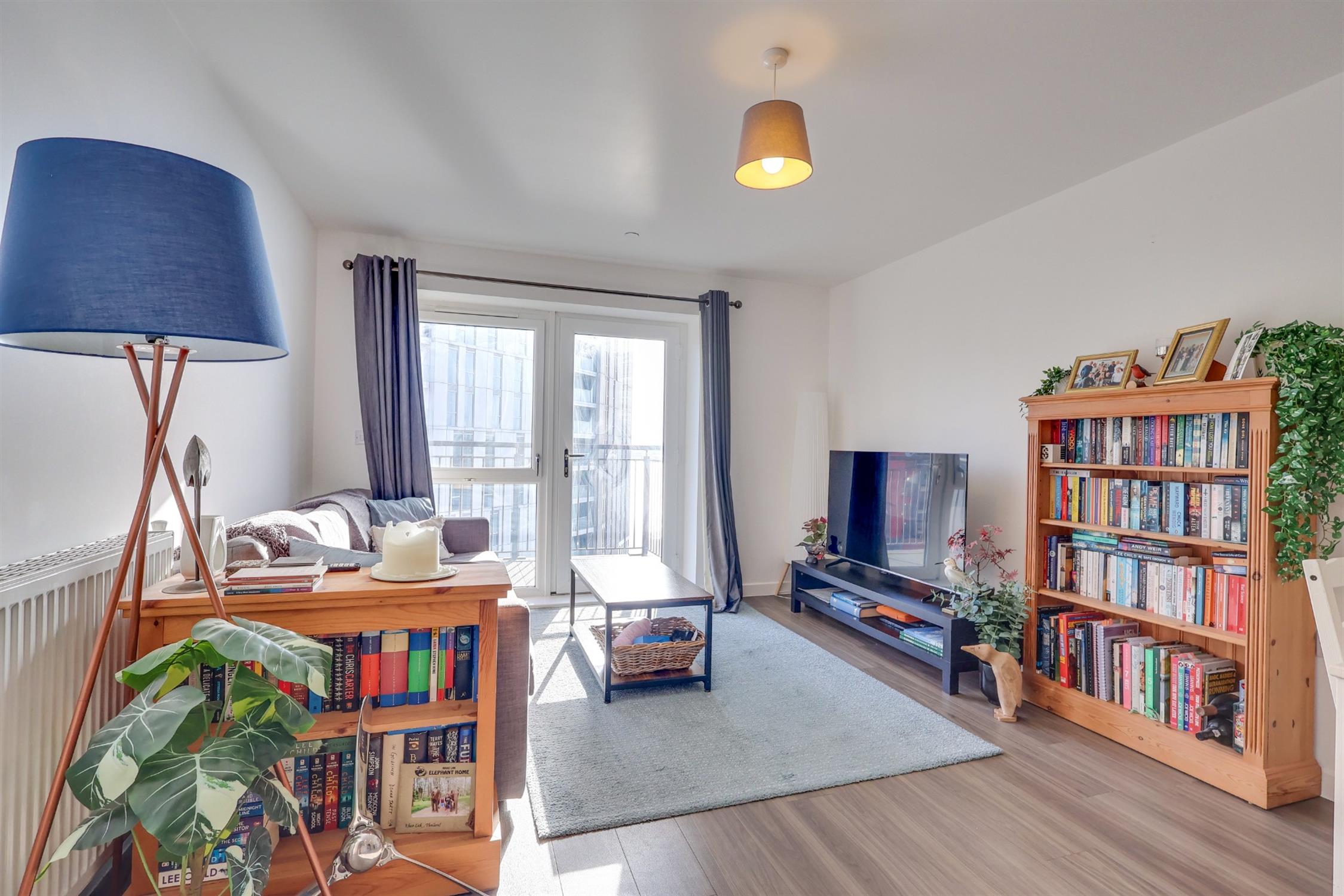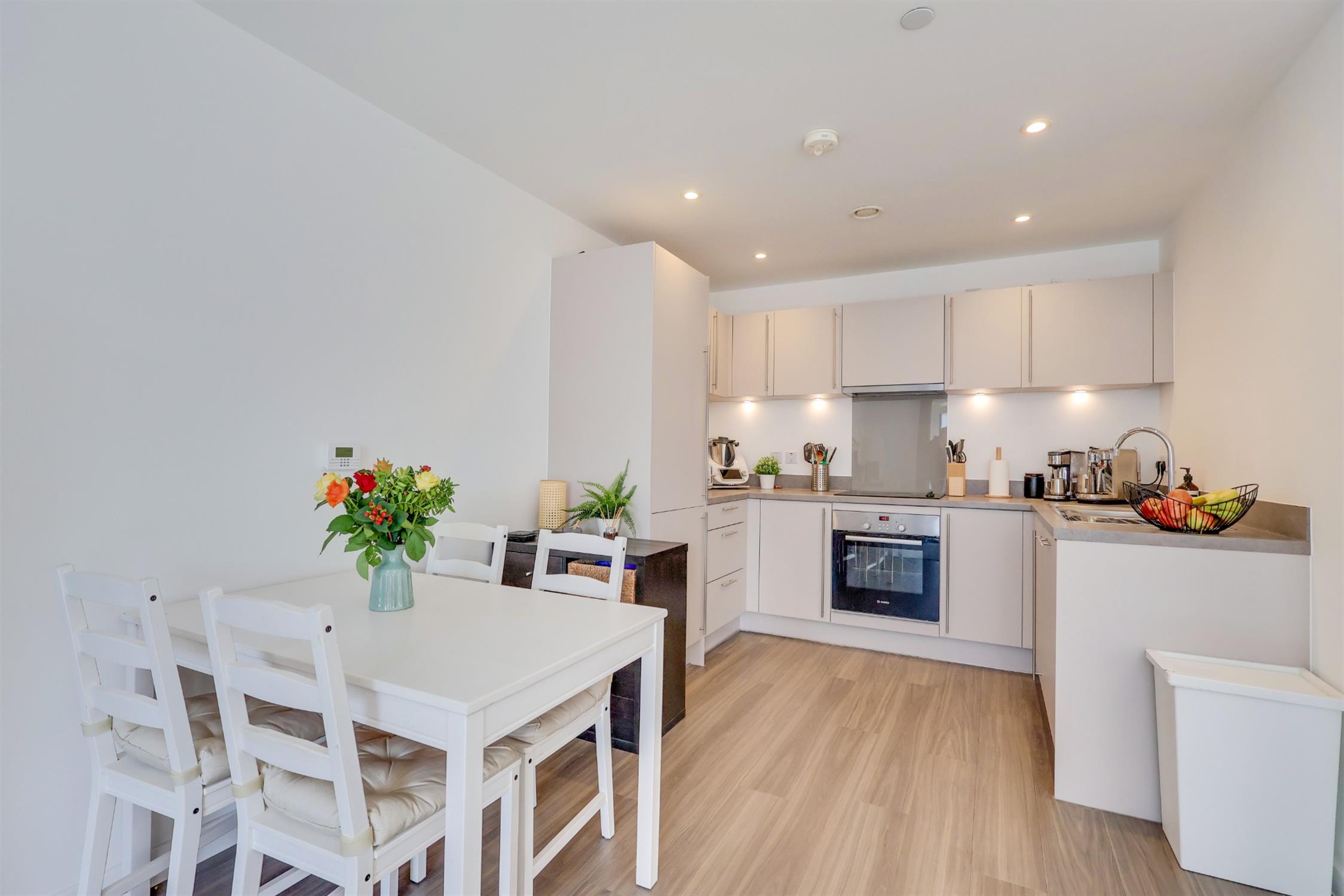 Smooth finish to ceiling, double glazed door and window to front elevation, radiator, door to balcony. Kitchen: Smooth finish to ceiling, spotlights, a range of matching wall and base mounted units with roll top work surface over, tiled splashbacks and under lighting, inset one and half sink and drainer, integrated fridge/freezer, cooker with oven & hob over and dishwasher.