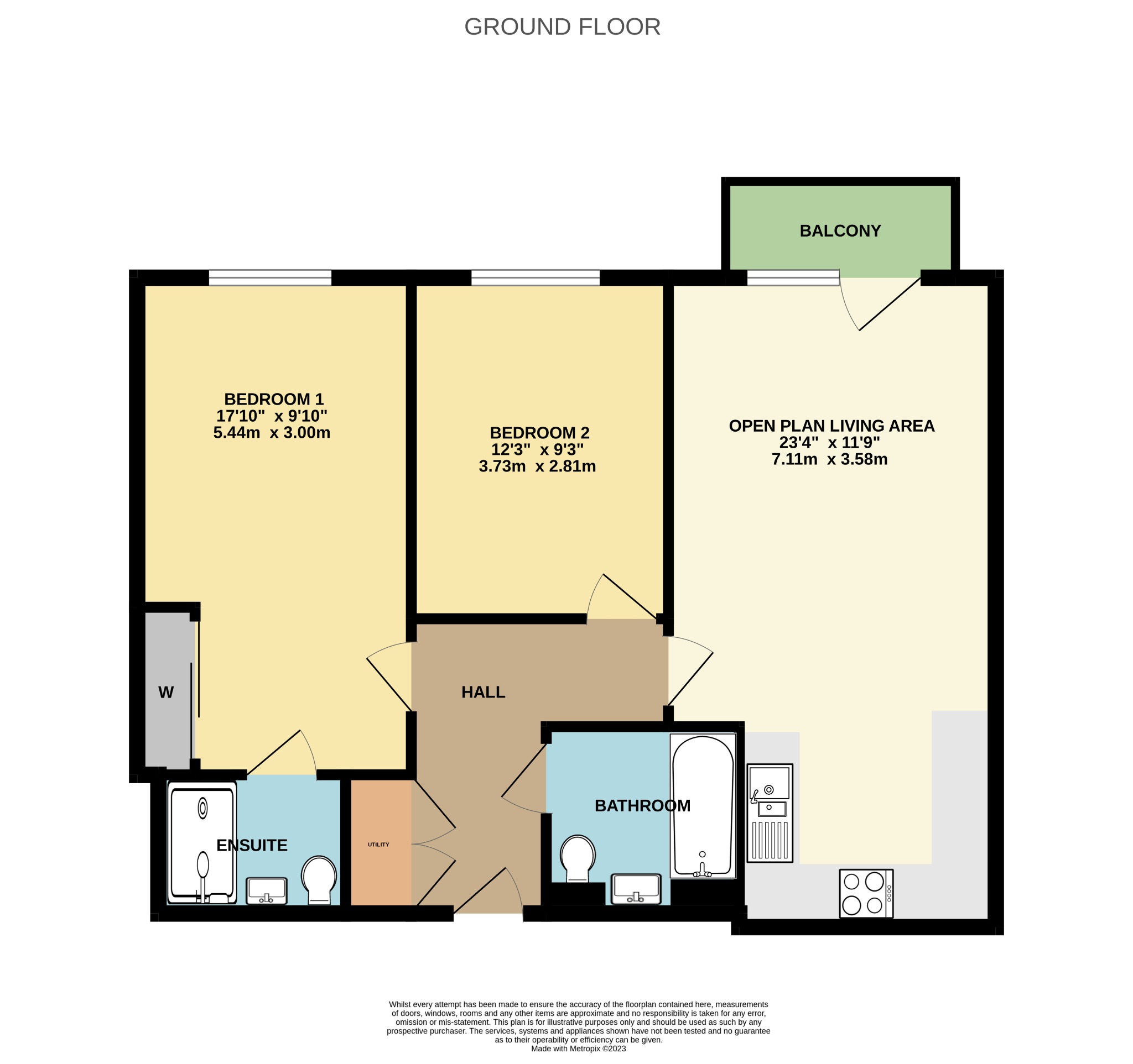 23' 4" (7.11m) x 11' 9" (3.58m):
