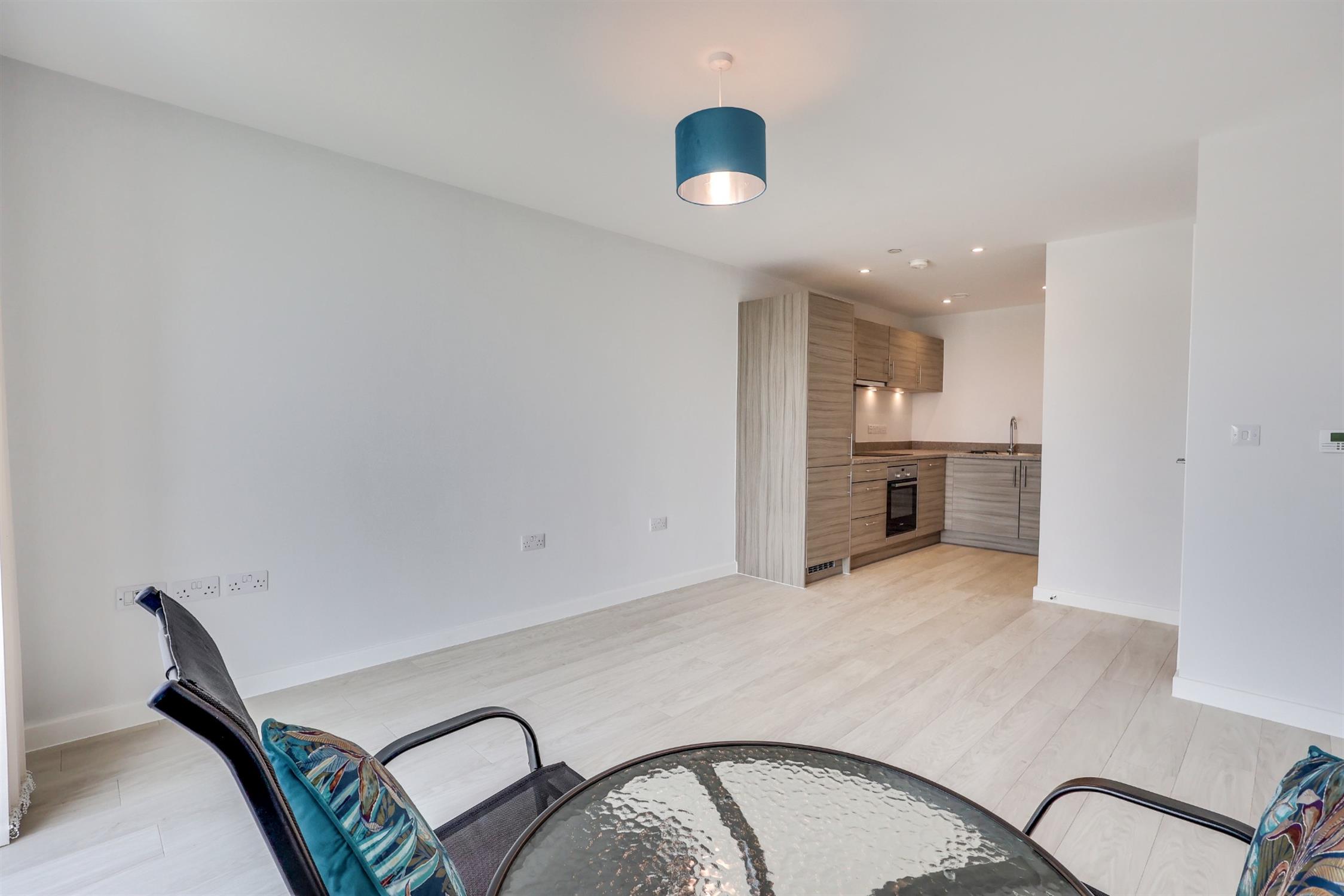 Lounge: Smooth finish to ceiling, uPVC double glazed window to front aspect and uPVC double glazed door and window to side aspect opening onto balcony, kitchen: a range of modern wall and base drawer units with work surface over, built in oven and electric hob over, stainless steel sink and drainer inset, integrated dishwasher and fridge freezer, wood effect flooring, radiator.