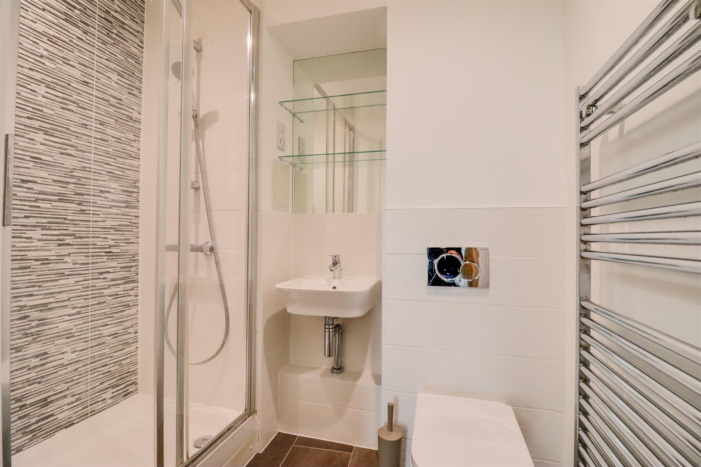 Smooth finish to ceiling, inset spotlights, walk-in shower cubicle, low level WC and hand wash basin, tiling in principle areas.