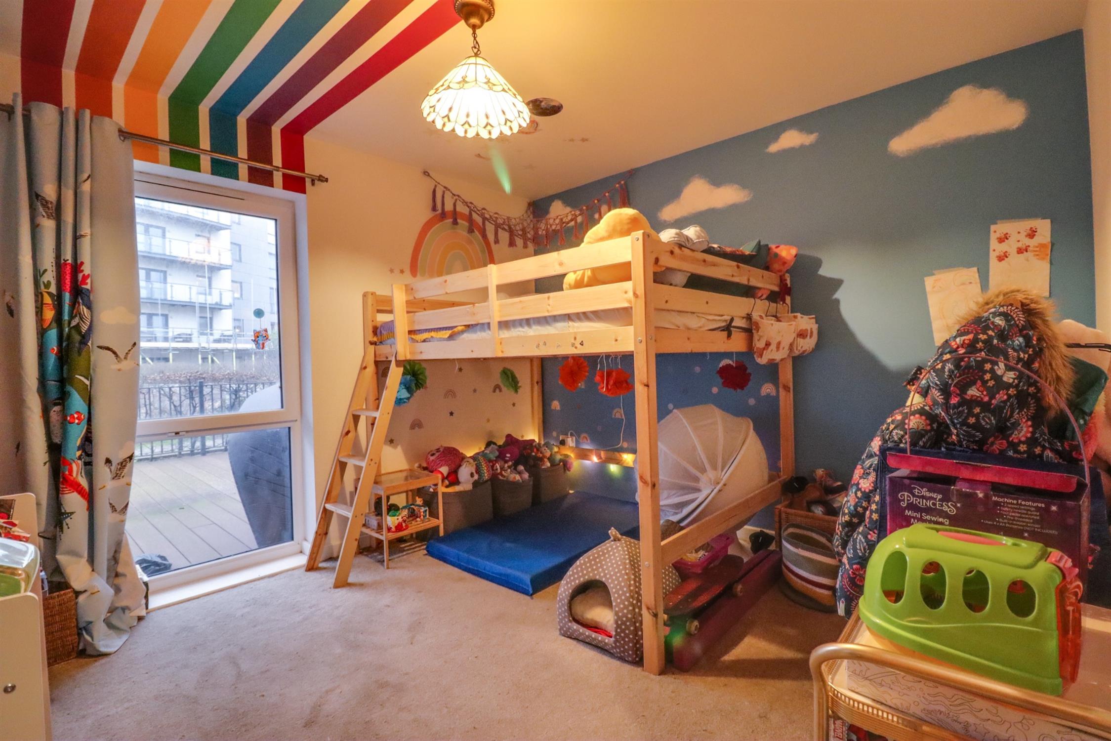 Smooth finish to ceiling, inset spotlights, two double glazed windows to front aspect, double glazed door opening onto balcony, luxury Amtico flooring, two radiators. Kitchen: An extensive range of modern wall and base drawer units with under-lighting and roll top work surface over, integrated Bosch oven and hob, integrated fridge and freezer, inset sink and drainer.