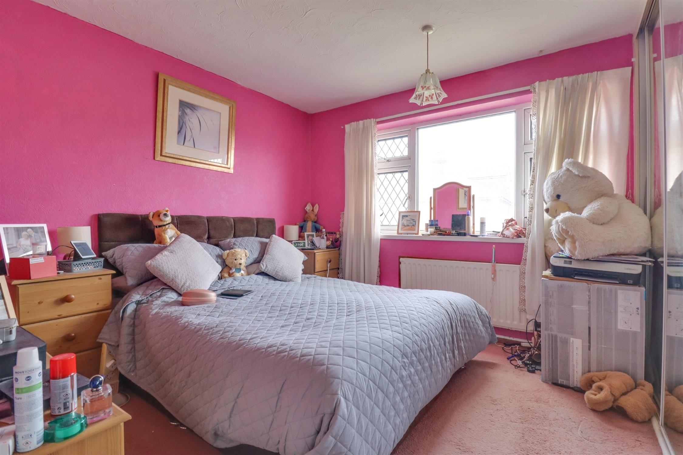 Textured finish to ceiling, double glazed window to front elevation, built in wardrobes with mirror fronted sliding doors, radiator.