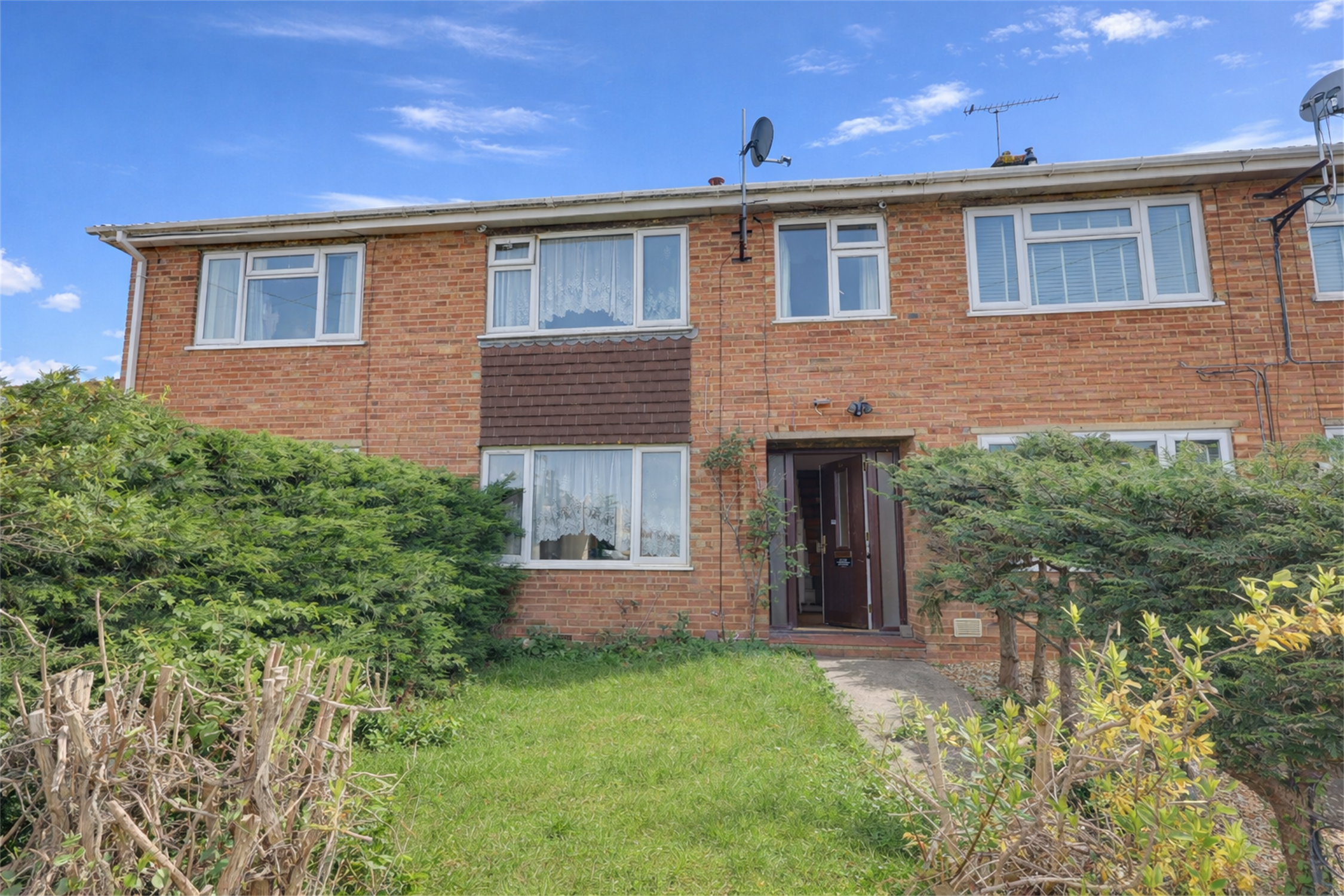 Mature shrub & hedge borders, lawn area, pathway leading to front door.