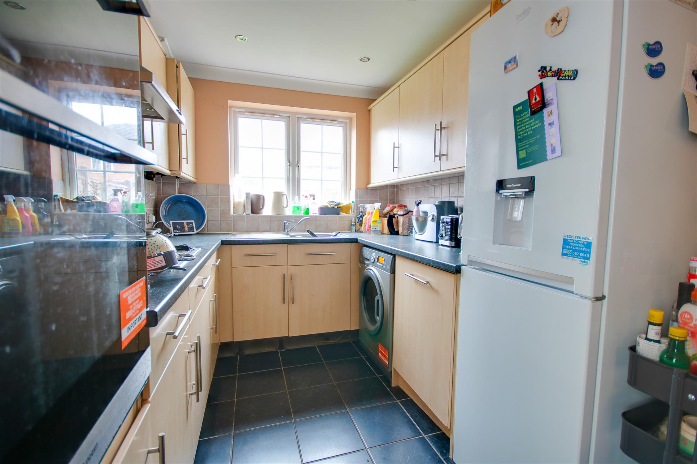 Smooth and coved ceiling, inset spotlights, UPVC double glazed window to rear and UPVC double glazed door to side, a range of wall base and drawer units with work surface over, built in oven, gas hob with extractor over, space for appliances, tiled splashbacks and flooring, radiator.