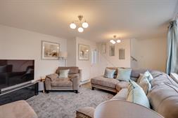 Smooth finish to ceiling, double glazed window to front elevation, under stairs storage cupboard, two radiators, stairs rising to first floor, door too.