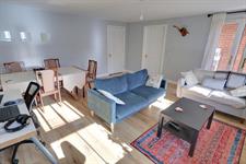 Upon entering, you’re welcomed by a spacious entrance hallway providing ample space for shoes and coats, along with two built-in storage cupboards for added practicality. The hallway leads to the heart of the home — a bright and airy open-plan lounge/dining room. This impressive space easily accommodates multiple sofas, a large dining table, and additional furniture. With four windows and French doors leading to a private balcony, natural light floods the room, creating a warm and inviting atmosphere. The balcony offers an ideal spot to unwind and enjoy a drink after a long day at work.