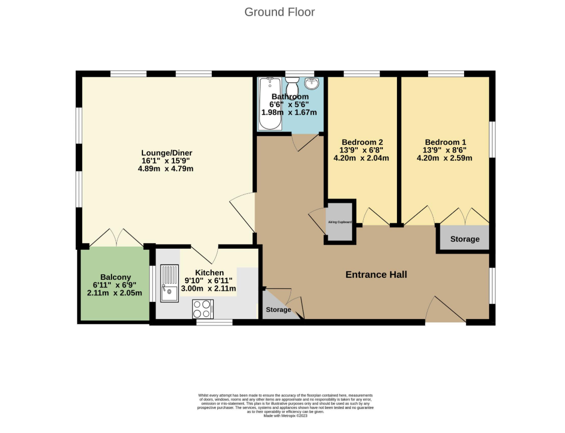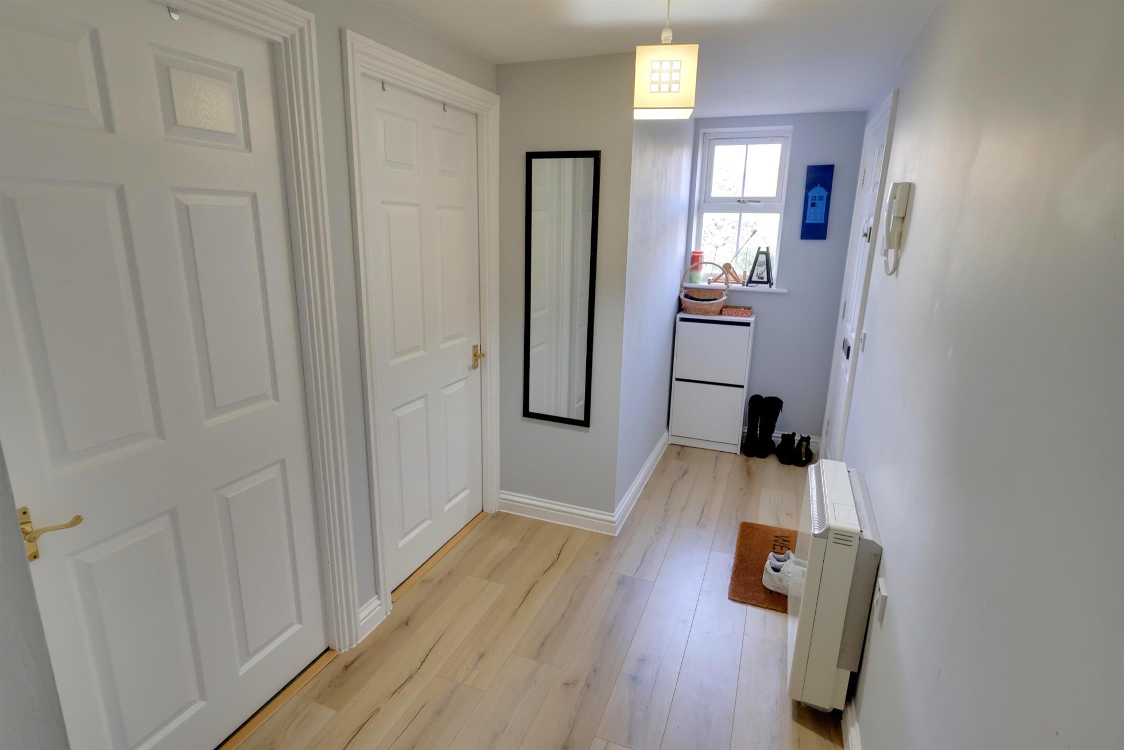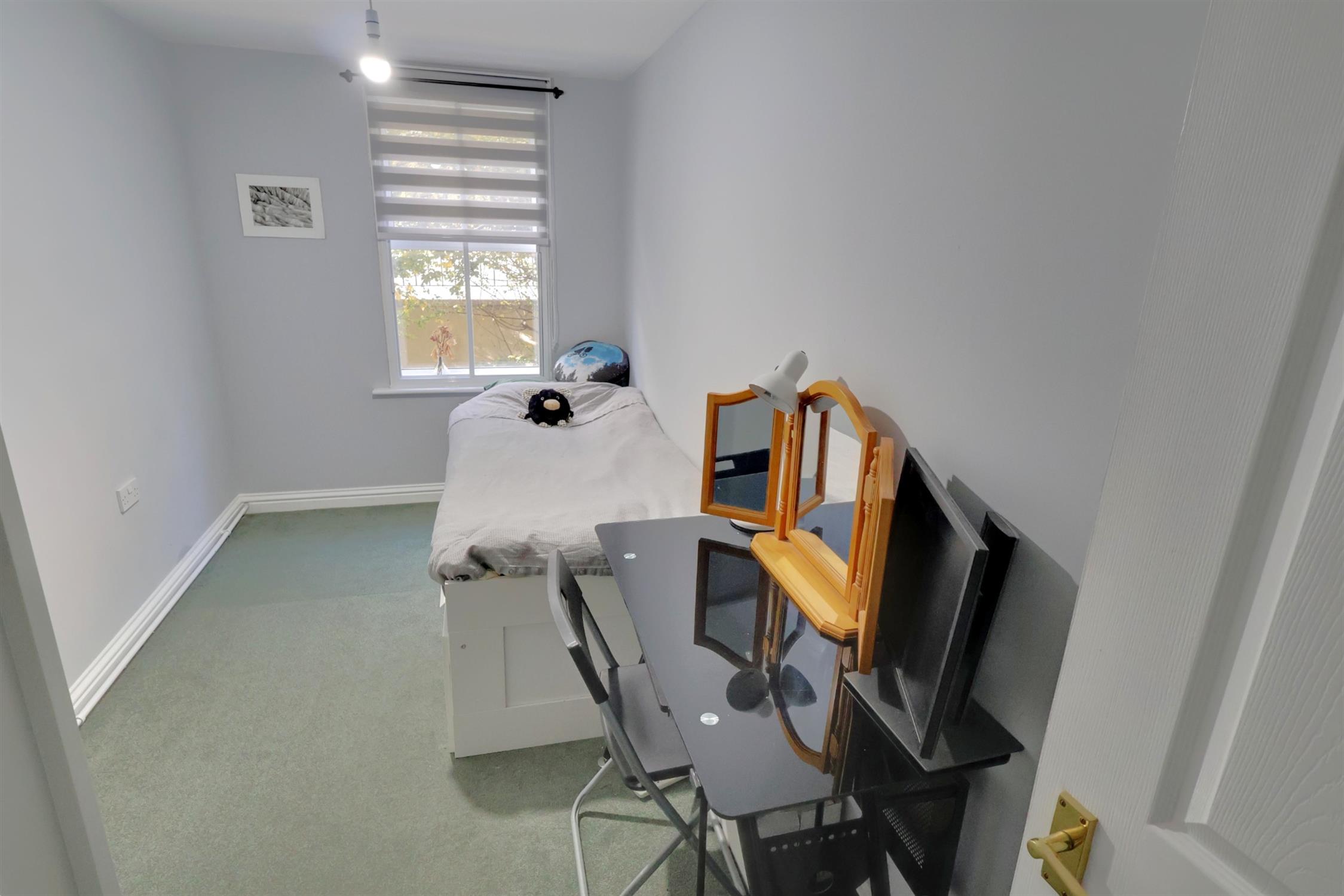 Both bedrooms are accessed from the main hallway. The main bedroom is particularly spacious, offering a built-in wardrobe and plenty of room for a king-size bed and extra furniture. The second bedroom provides excellent versatility, making it an ideal guest room, home office, or hobby space.