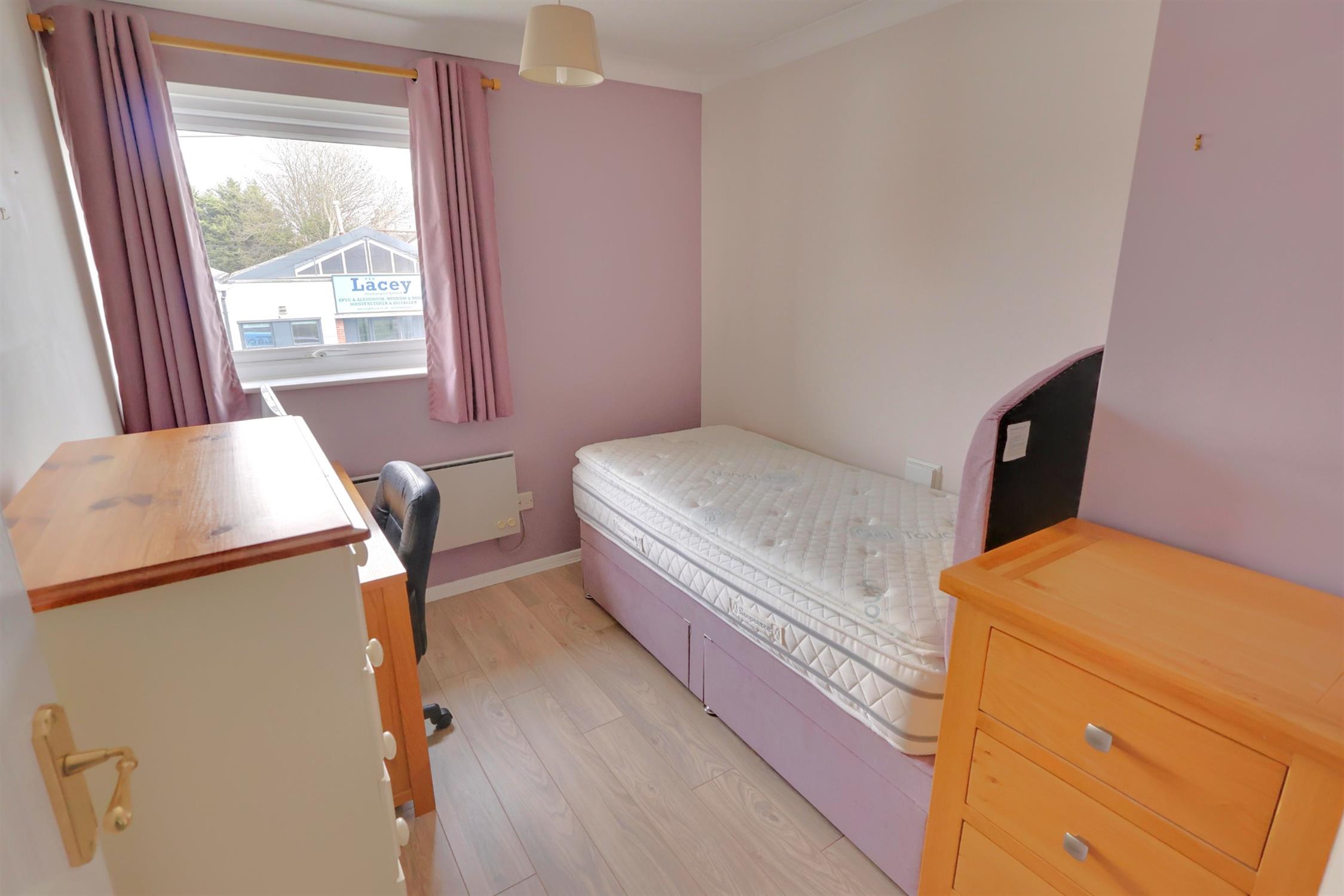 The main bedroom is a spacious double and includes a built-in wardrobe, while the second bedroom is versatile and well-suited as a guest room, home office, or hobby space.