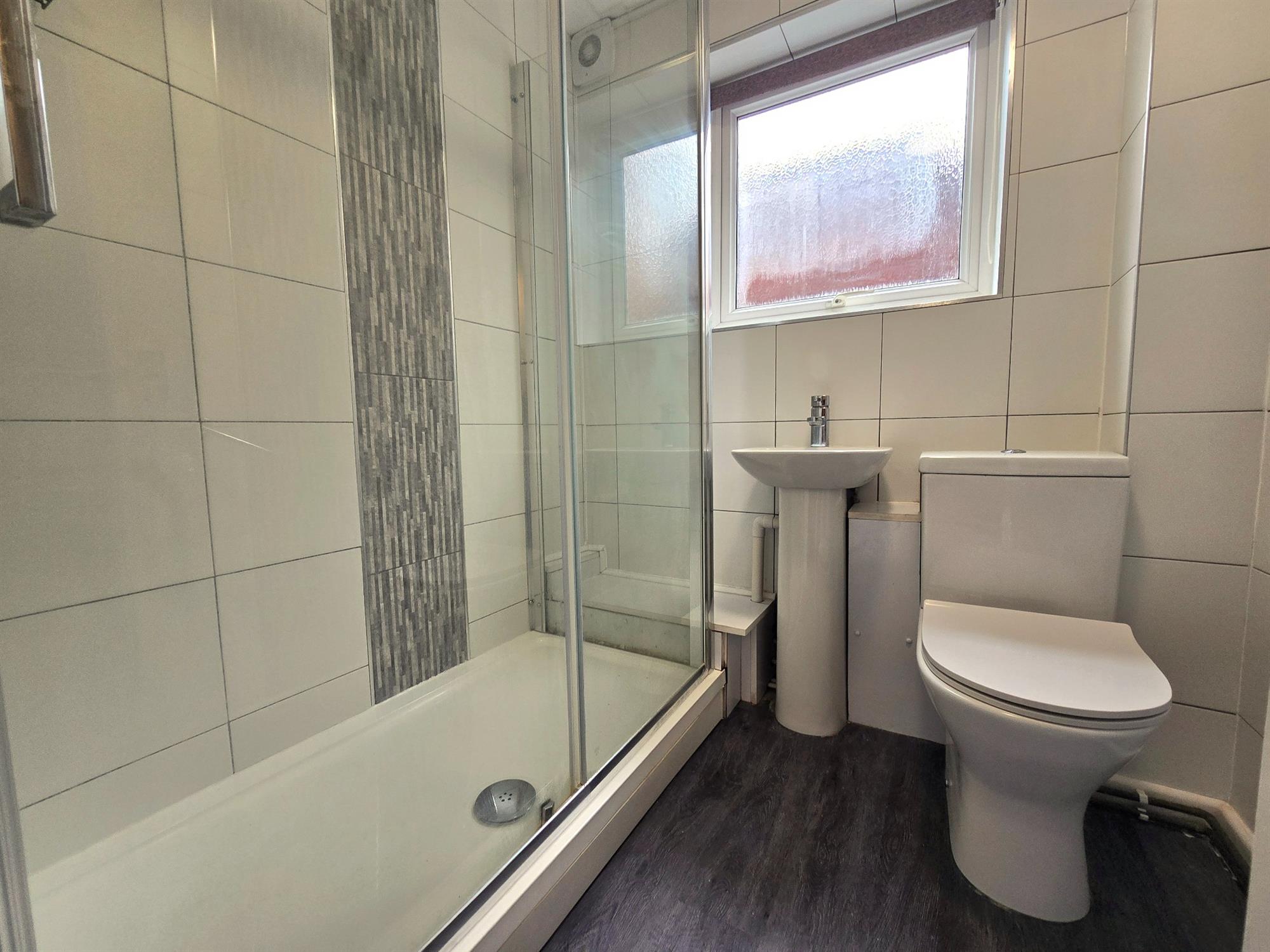Smooth finish to ceiling, double-glazed window to side elevation, shower cubicle with mains fed shower, low level wc and hand wash basin, tiled floor to ceiling, heated towel radiator, extractor fan.