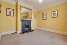 Textured finish to ceiling with original coving, picture rails, UPVC double glazed window to front elevation, feature fireplace, radiator.