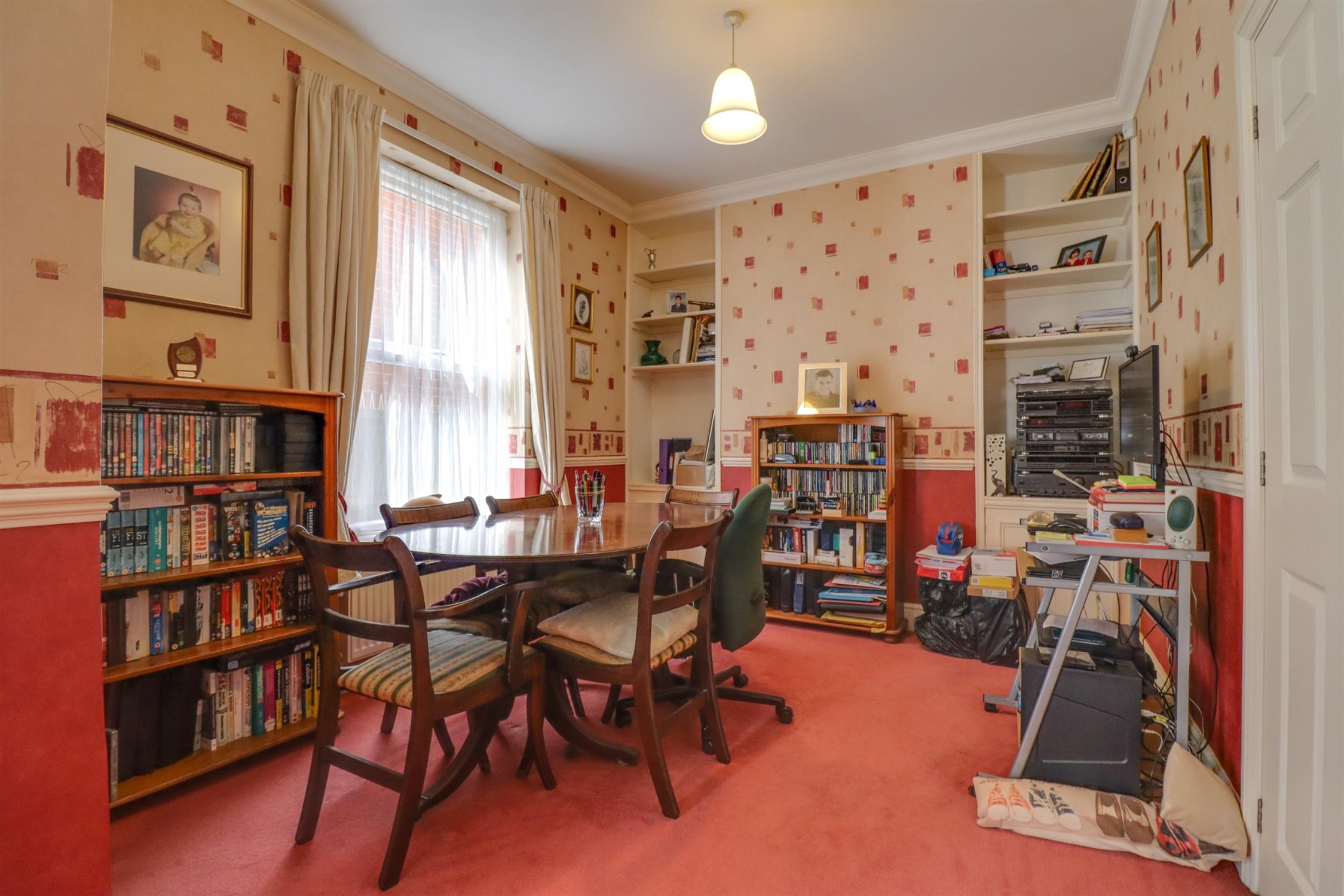 Smooth finish to coved ceiling, UPVC double glazed window to side elevation, built in storage, radiator.