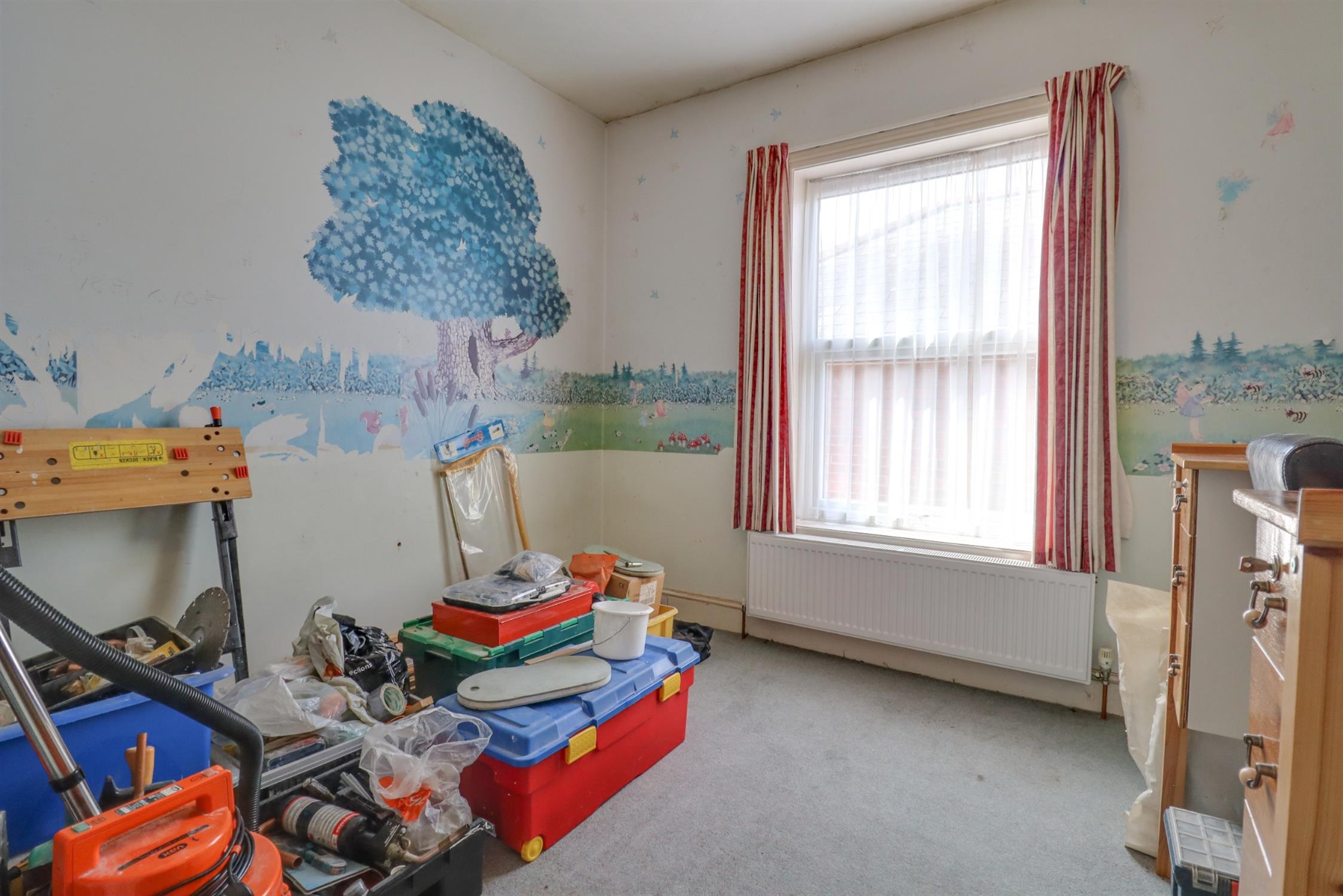 Textured finish to ceiling, UPVC double glazed window to side elevation, radiator.