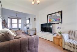 Smooth finish to coved ceiling, picture rails, double glazed bay window to front elevation, double glazed window to rear elevation, feature gas fireplace with surround, built in storage, radiator.