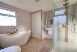 En-SuiteSmooth finish to ceiling with inset spotlights, double glazed windows to rear and side elevation, walk in shower cubicle with mains fed waterfall shower over, free standing bath with centralised taps, low level WC and wash hand basin, heated ladder towel rail, storage cupboard, fully tiled.
