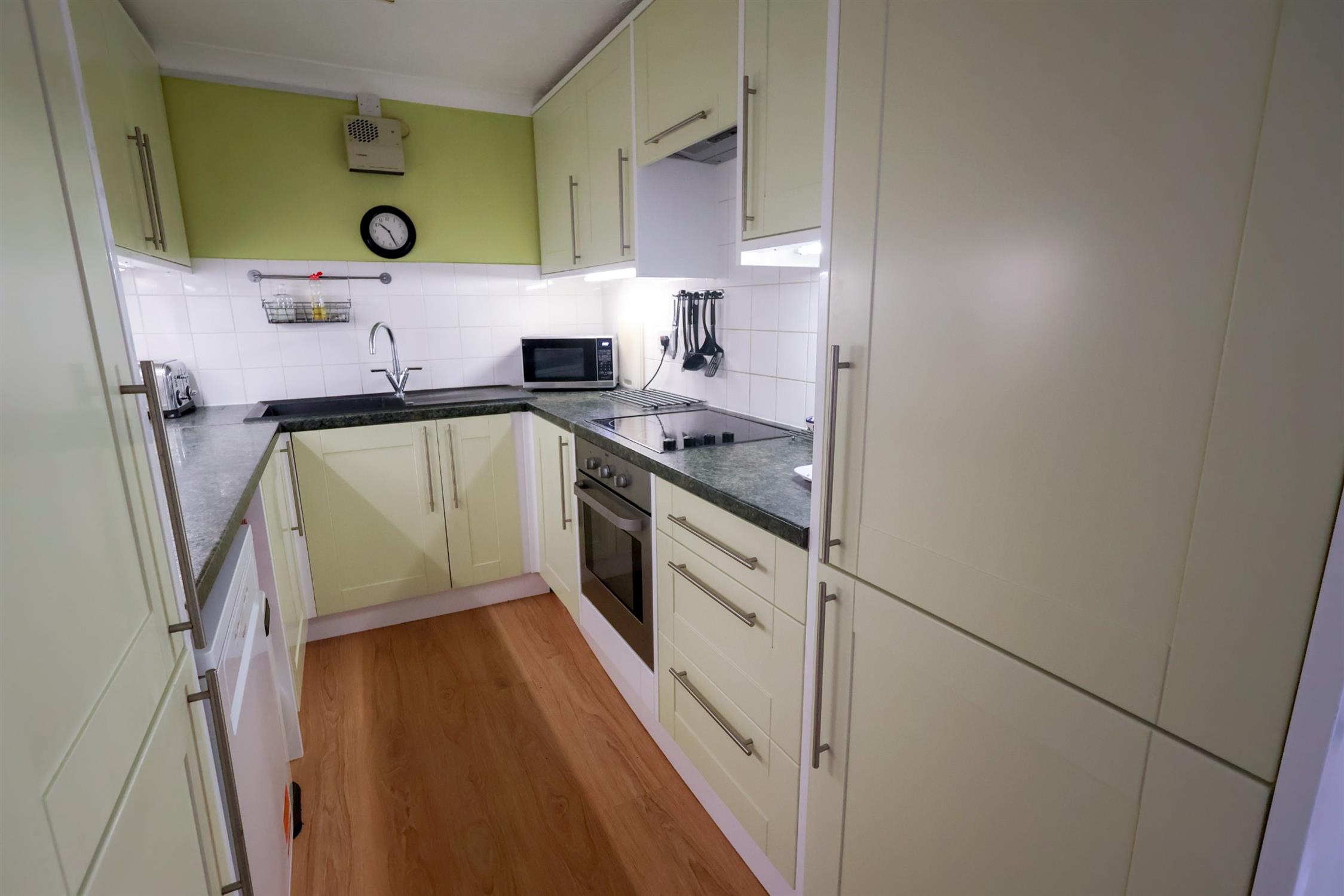 The kitchen and bathroom are modern and of a decent size with the lounge overlooking the garden. Benefits include parking space, modern electric heating and double glazing!