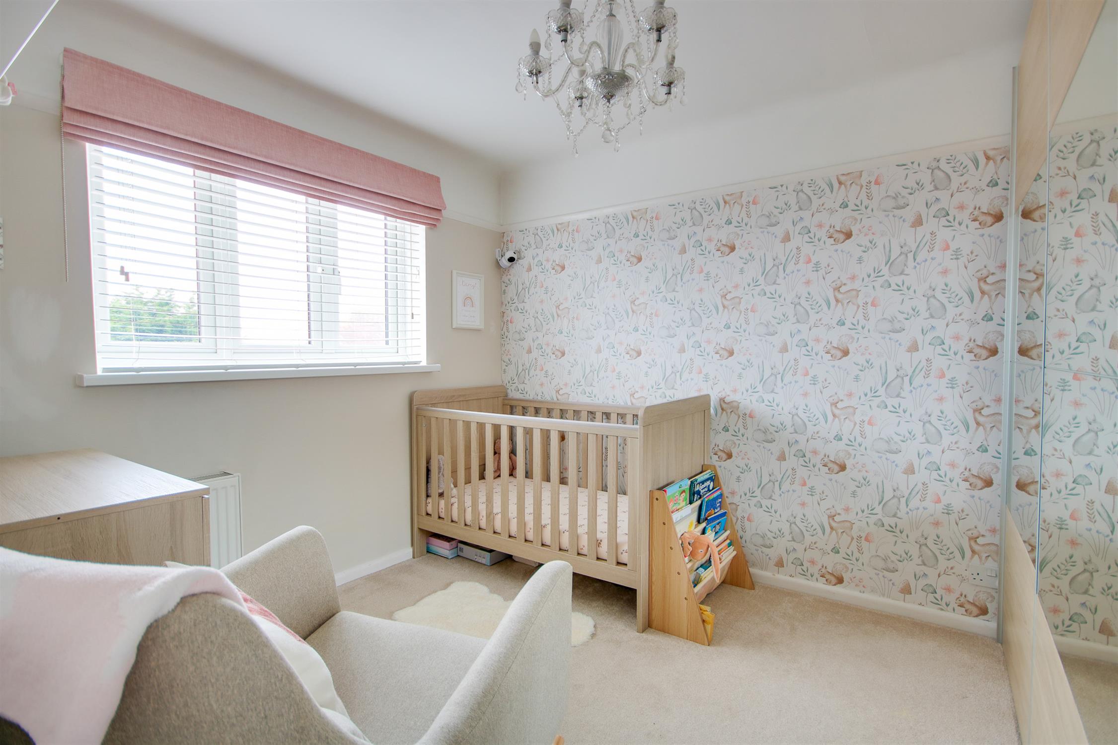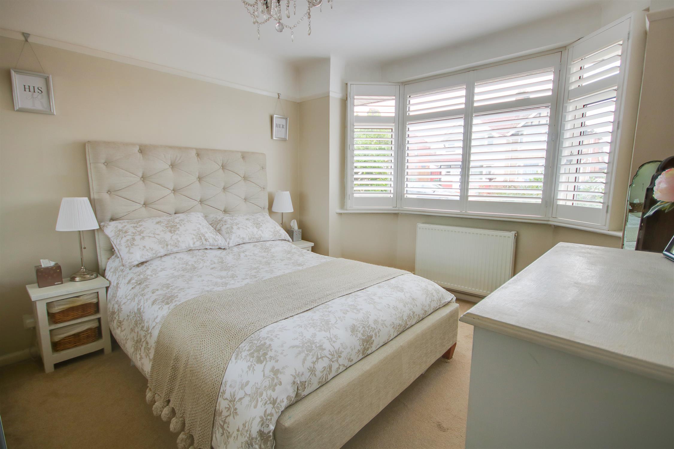 Smooth ceiling with picture rail, UPVC double glazed bay window to front with hardwood fitted shutters, fitted wardrobes, radiator.