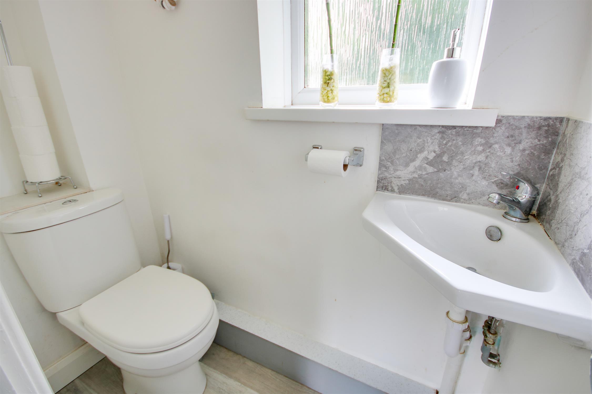 Smooth ceiling, UPVC double glazed obscured window to rear, WC, wash hand basin, laminate floor.