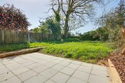 Fence enclosed rear garden, mainly laid to lawn, patio seating area.