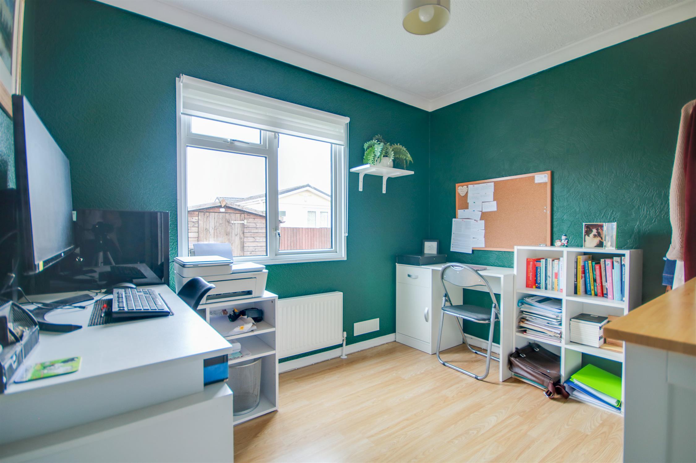 Laminate wood flooring, sockets, one radiator, UPVC double-glazed window to rear aspect, textured coved ceiling.