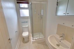 Bathroom - A three-piece suite comprising a shower cubicle, WC, and hand basin.