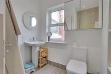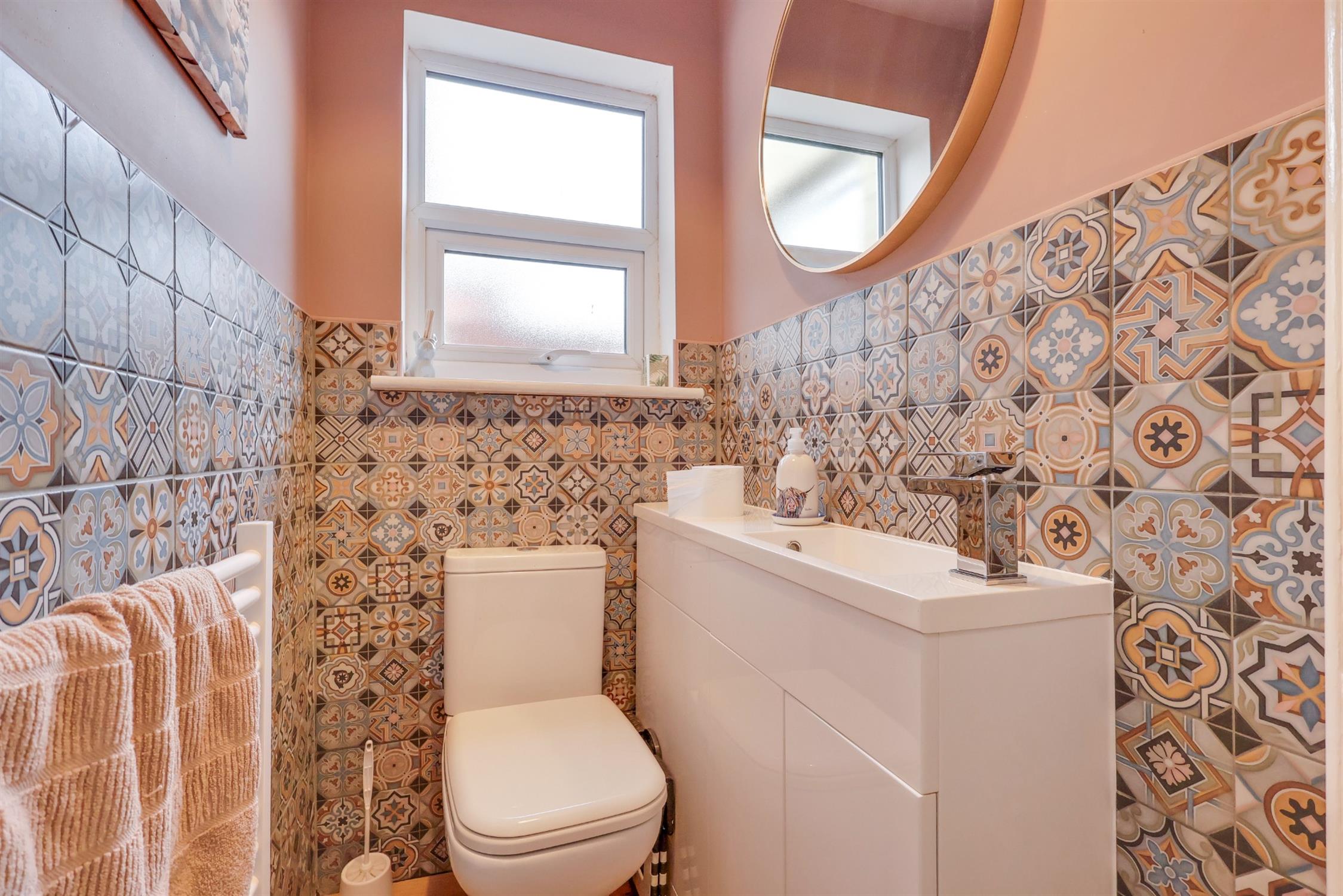 Smooth finish to ceiling, double glazed window to side aspect, low level WC, vanity hand wash basin, tiled flooring.