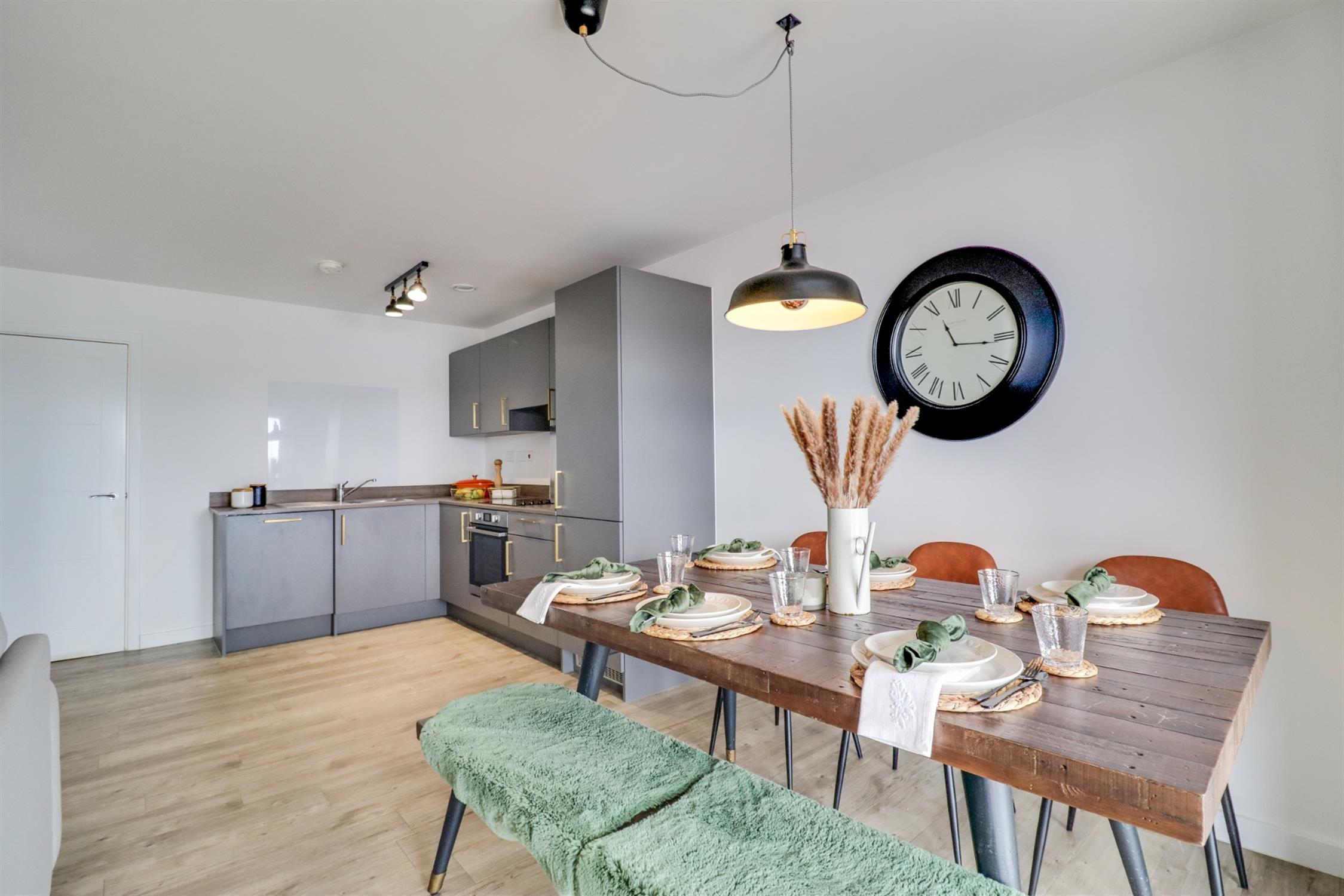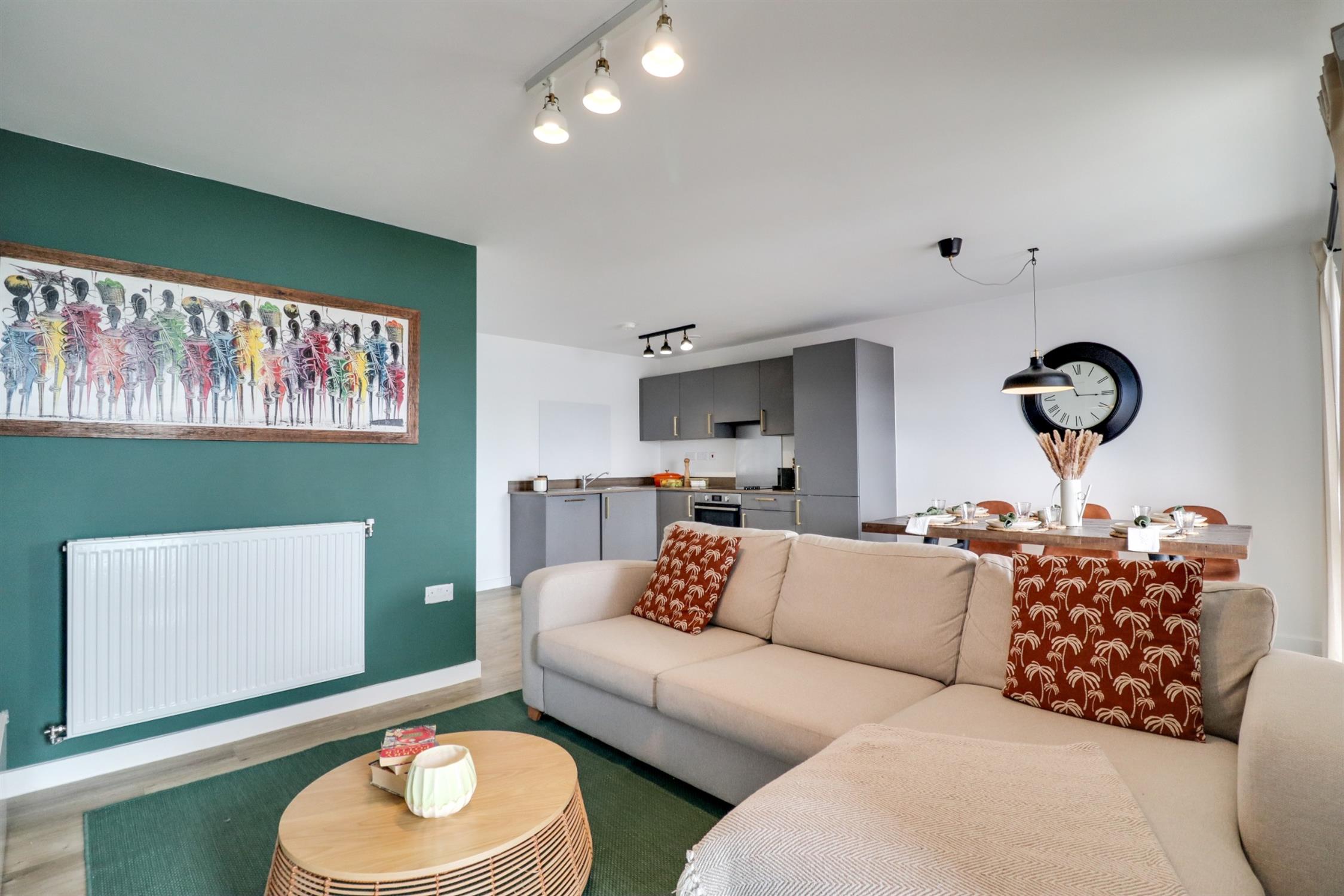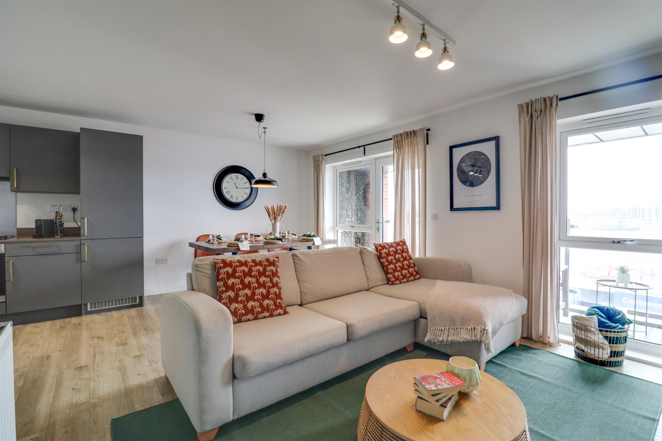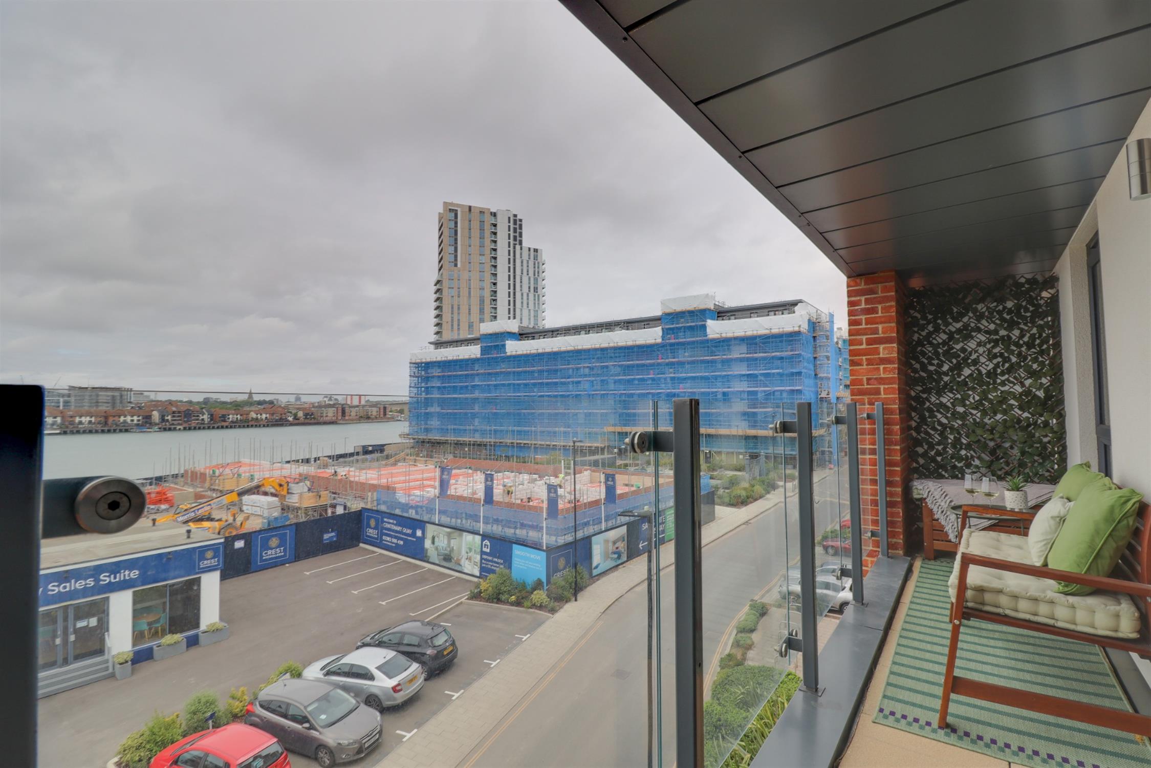 The centrepiece of this home is the 19'6' foot open-plan living area which combines both comfort and style. There space is divided into three area, a formal dining area, elegant sitting room and modern kitchen, completing the space there are high ceilings and full height windows and doors. The ultra modern kitchen diner which has been designed with a stylish range of wall and base units, inset spotlights and a selection of A+ rated integrated appliances. Further in, across the rear aspect of the apartment, there are two bedrooms, both of which are generous doubles, including an impressive 19'6' foot master bedroom suite which benefits from its own private 19'2' foot balcony, en suite shower room and a double built in wardrobe. Also included within this home is a modern Roca bathroom with Porcelanosa tiles and a spacious entrance hall with a generous utility cupboard with space and plumbing for a washer dryer. Outside, designed with entertaining in mind; the main balcony is accessed from the hub of home via a full height door in the lounge which opens onto a cosy, river-facing balcony that extends to the west with an overall length of nearly six meters / over 19 ft. There is room for outdoor furniture so you can relax, entertain, sunbathe or enjoy sundowner cocktails, whilst taking in the mesmerising atmosphere of ever-changing lights and far-reaching panorama over Ocean Village marina where an array of boats and yachts can be seen. To top it all off, the property also comes complete with an allocated parking space, 6 years remaining on the NHBC guarantee and is offered with a completed onward chain.