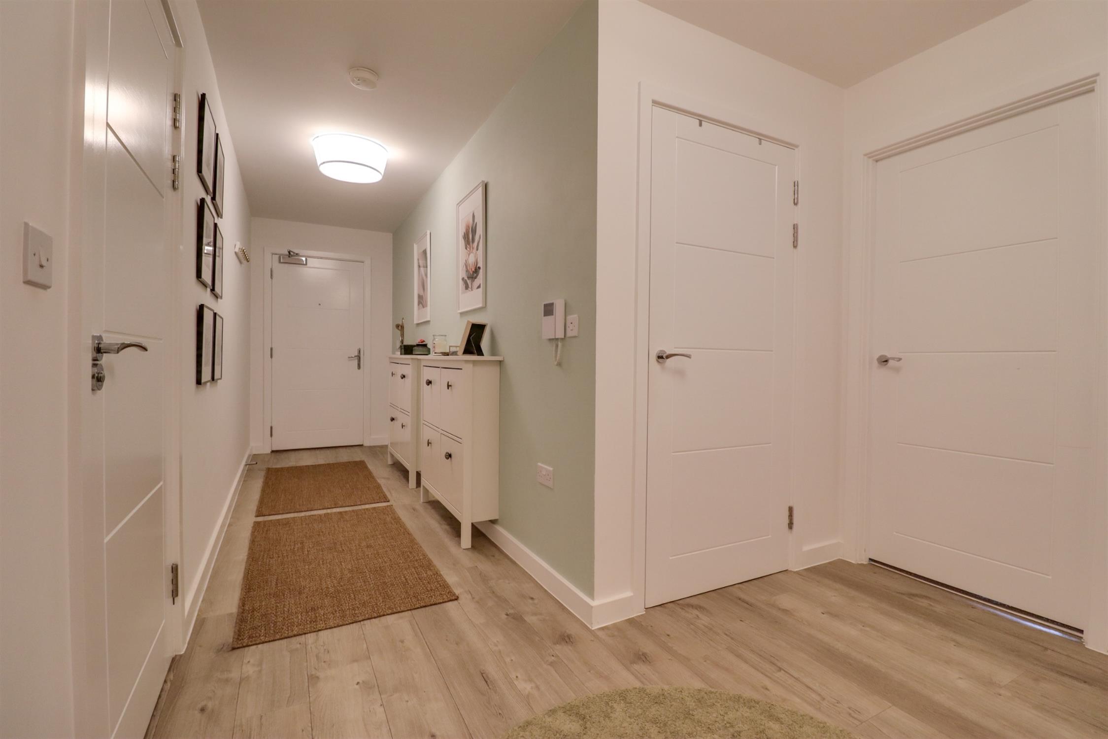 Smooth finish to ceiling, secure entry system, utility cupboard housing washing machine, doors to: